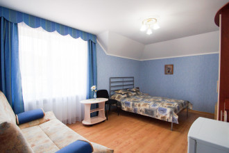 К услугам гостей просторный двор на берегу речки в которой любители половить рыбку насладятся рыбалкой, просторные современные номера с удобствами, оборудованная кухня для самостоятельного приготовления пищи, автостоянка, детская площадка и мангал.