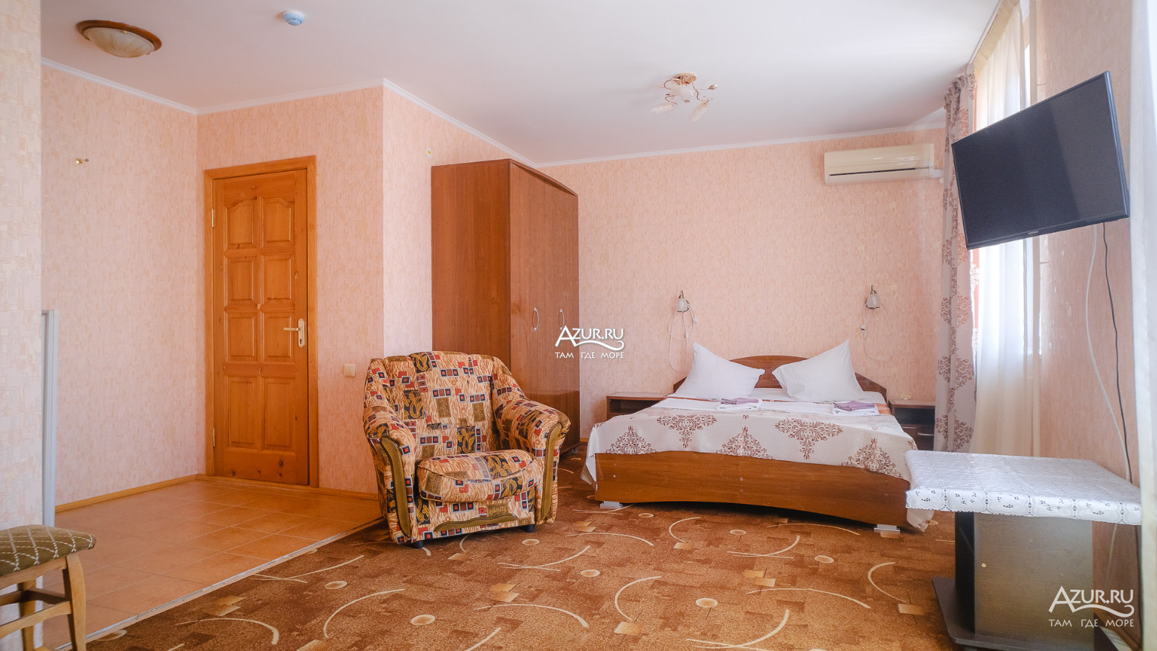 Мебель: одна двуспальная или две односпальные кровати, прикроватные тумбы, туалетный столик, шкаф для одежды