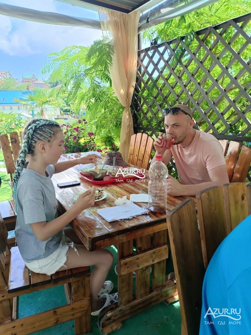 Оставляю отзыв поздно, но все же. Нам очень понравилось! Хозяева отличные! До моря идти не далеко минут 8-10. Номера чистые. Рядом магазин Пятерочка. Так же, есть магазинчик, тоже рядом) Приехали отдыхать с ребенком 3х лет- Восторг!!! Бассейн,Площадка,Качели,Игровая комната. Бассейн для взрослых))) территория большая! Есть где развернуться. Зона шашлычная. Зона отдыха. Просто все все супер! С общей кухней приноровились, не проблема. Единственное.....маловато электрических комфорок в час пик оголодавших постояльцев. Но и тут можно приноровиться. Так же хозяева готовят обеды по желанию это очень удобно))) Ирина и Геннадий, Спасибище Вам огромное за чудесный отдых!!!!