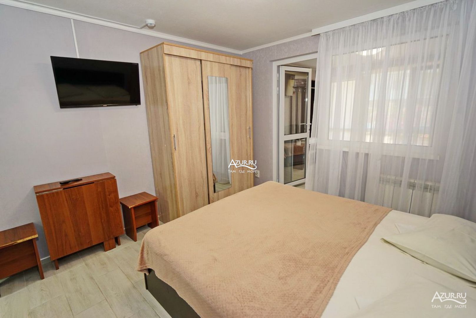Отдыхающие размещаются в 4-х этажном Гостевом доме "Милана". Весь номерной фонд оснащен хорошей мебелью, отдельным санузлом (туалет, душ), сплит-системой, холодильником, сейфом, телевизором, телевизор поддерживает устройство USB.