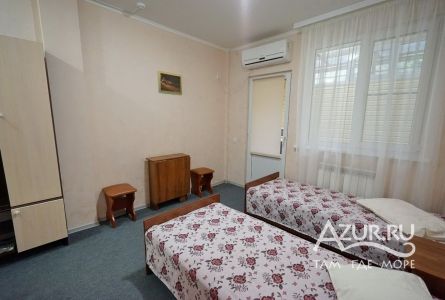 Номера находятся на втором этаже, в теневую сторону. В стандартных номерах имеются: сейф, сплит-система, телевизор. Wi-Fi, сан/узел в номере, душ, На кроватях топер (5см). Предоставляются: полотенца (ручные и ножные), постельное белье. Фен по просьбе. Также есть 1-доп. место-комфортная раскладушка. На мини кухне имеются: холодильник, микроволновая печь, электрочайник, стол, стулья, сушка для белья.