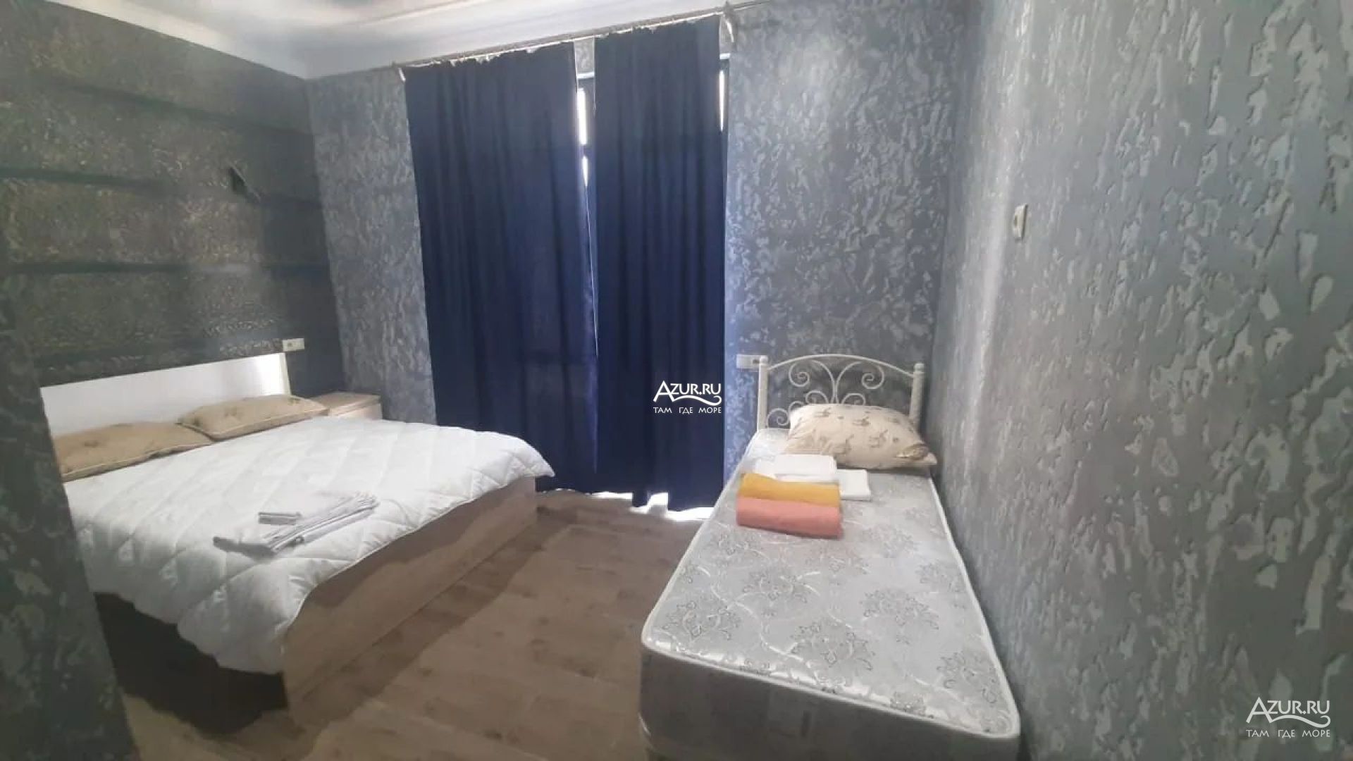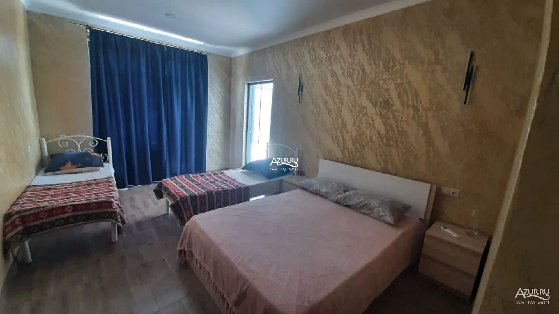 Мебель: двуспальная и две односпальные кровати, шкаф, тумбочки