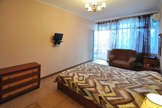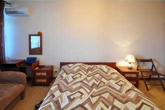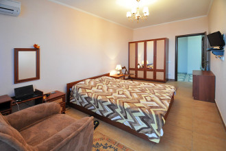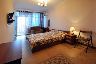 Рядом остановка общественного транспорта, само море с пляжами, магазин продуктов и предметов первой необходимости и кафе на берегу с возможностью доставки заказов в номер. Все развлечения находятся на центральной Алушты набережной, до неё 20 минут ходьбы.