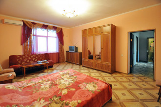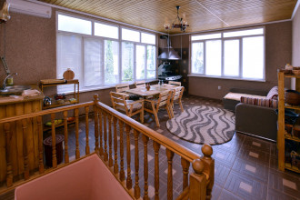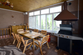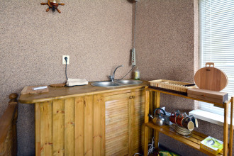 номер с отдельной комнатой с газовым мангалом, для застольного и настоящего мясного отдыха, есть небольшой балкончик с мебелью.