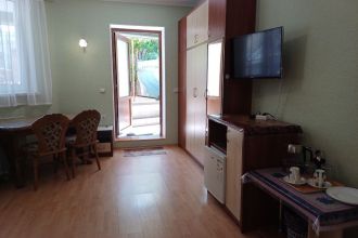 В этот гостевой дом попали с супругом совершенно случайно и ни разу не пожалели.Номер (2) отличный , матрас на кровати ортопедический.Окна выходят на задний двор с зеленью и это хорошо,так как всегда тихо.Все просто отлично,для безмятежного отдыха хозяйка Галина всё предусмотрела, комфорт,чистота и порядок во всём.Во дворе очень атмосферная обстановка -фонтан,много зелени. Все в шаговой доступности - магазины,рынок,Храм.На пляж прогулочным шагом 10-15 минут,но можно и на троллейбусе 1 остановку..Дом расположен в глубине дворов,шума ночи (курортный город всё же)не слышно вообще! Спасибо Галине и ,надеюсь,до новых встреч