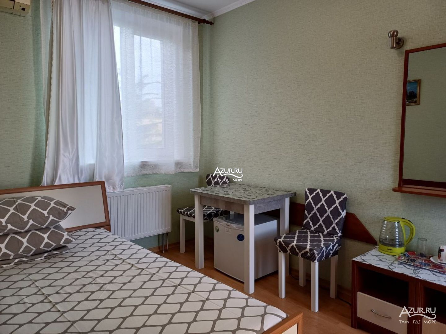 Всем доброго дня! Нам посчастливилось остановиться в августе на 24 дня в гостеприимном и просторном Гостевом доме " Морская гладь", в номере 5, с закрытой стоянкой для авто, мангальной зоной с качелями во дворе, которую украшает искусственный водопад (фонтан) с подсветкой, в вечернее время вносит особую романтику.;) В том числе, в гостевом доме "Морская гладь" предоставляют всё необходимое для комфортного проживания: кондиционер, ТВ, Wi-fi, чистое постельное белье (меняют 1 в неделю или по запросу), полотенца, чайник, чашки(в номере), шампура, всю необходимую посуду(тарелки, кастрюли, сковородки, вилки, ложки и прочее), стиральную машинку, утюг, гладильная доска..... В общем, как дома!!! Хотелось отметить великолепную инфраструктуру рядом, а именно: 5-7 минут пешком до автовокзала, овощного/вещевого рынка, продуктовых магазинов, кафе и столовой! В 10-ти минутах спокойной ходьбы до Центральной набережной со множеством развлечений как для детей, так и для взрослых. Дискотеки, кафе, рестораны, морские прогулки и прочее! Отдельная благодарность за гостеприимство, доброту и отзывчивость хозяйке Прекрасного Дома, Галине!!! Галина - светлый, добрый, отзывчивый человек, который всегда поможет, расскажет и покажет что Вам необходимо! Ещё раз огромное спасибо за гостеприимство!!! Если Вы приехали в Алушту и не знаете где можно остановиться, то Вам сюда - в гостевой дом "Морская гладь"!!! P.S. Цена соответствует прайсу! Без обмана и доплат! Лучшие условия за такую стоимость проживания!!!