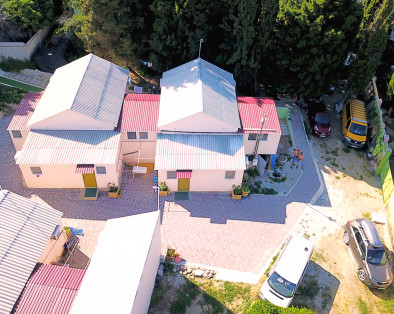 Размещение девять типовых отдельно стоящих коттеджей (26м²). Коттедж состоит из прихожей-кухни, комнаты Санузла и двух смежных жилых комнат, в каждой из которых по два спальных места. Отдельная комната санузла - душ, туалет, раковина, собственный бойлер. Смена постели раз в 6 дней.