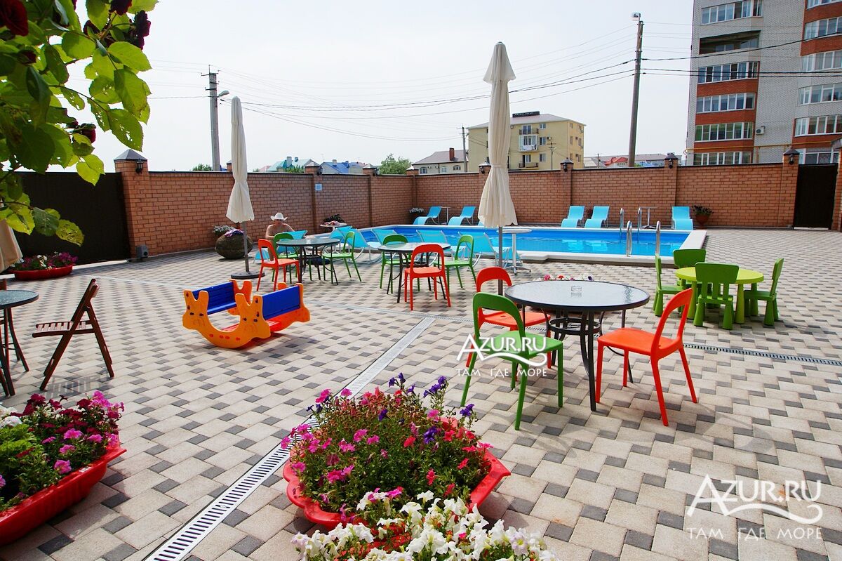 Территория: на благоустроенной территории отеля имеются бассейн с шезлонгами, зоны отдыха с беседками, детская игровая площадка, столовая, места для парковки автомобилей, работает комната релаксации, жемчужные ванны, фитнес-центр, сауна, салон-парикмахерская.