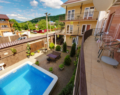 Наши впечатления не самые лучшие. Двор маленький. Сушилки общие. До моря 20 минут. Вечером голодные комары атакуют. Парковка только на платной стоянке. Персонал не доброжелателен. Готовят плохо. Рассмотрите что-то другое.