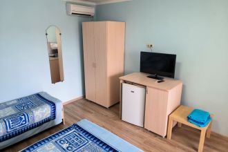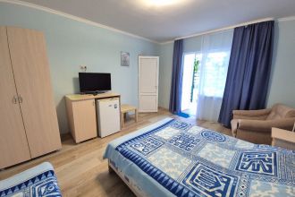 Прекрасное место отдыха, я не люблю шумные места, так что это моё отдыхали с женой до моря минут 20 ходьбы это хорошо люблю прогуляться, кто не любит ходит приветливый и отзывчивый Юрий четыре раза в день возит до моря и забирает на комфортабельном микроавтобусе. Во дворе прекрасный бассейн который чиститься каждый вечер, вообще нам очень понравилось! Спасибо Марине и Юрию!