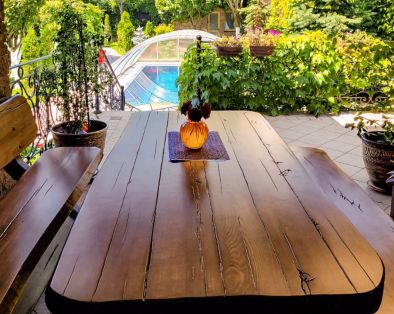 - открытый бассейн (60 м3) 8*4 метра, глубиной от 1 до 2.2 метров, с телескопическим куполом, оборудован водопадом, гидромассажем, гейзером, подсветкой, испанское оборудование. Очистка бассейна происходит с помощью электролитов и круглосуточной циркуляции воды (перелив с чащи), без хлора. Можно пользоваться с мая по октябрь, в зависимости от погоды.