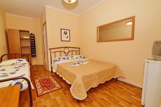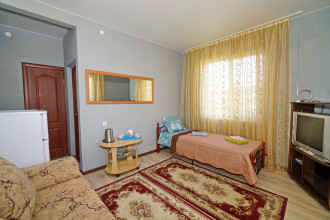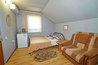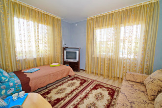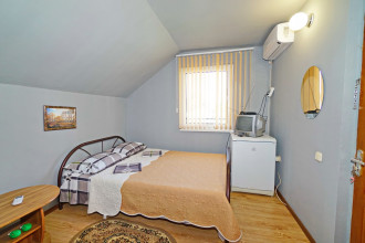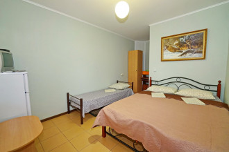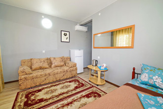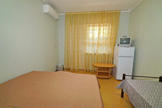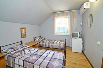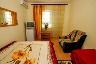 Все отлично атмосфера приятная, номера чистве уютные, кухня чистая все принадлежности, в номере все для комфорта, вода горячая постоянно что важно, хозяева добрейшие люди, для деток есть место поиграть, есть место парковки во дворе, телевизор на улице, мангал во дворе, до моря 10 мин, учесть переход через дорогу светофор горит красным 190 сек., в номерах кондиционер телевизор холодильник бесшумный, туалет душ.
