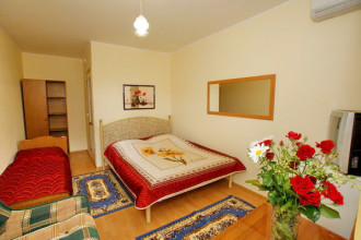 по просьбе Татьяны пишу отзыв. сразу скажу, что она попросила написать всё как есть: что понравилось и что не понравилось. без преукрашиваний, подлизываний и т.п. - Начну с того, что прежде чем остановиться в "элладе", мы поглядели около полутора десятков вариантов. В половине мест, узнав, что мы хотим заехать на 1-2 дня - сразу указавали на дверь. В другой половине либо цены были не гуманные, либо двор словно базар в час пик и т.п. - открыв дверь ворот эллады мы словно попали в другой мир. там на улице гомон, пыль, толпы, шум и вдруг, чистота, порядок, тишина и умиротворённость. а что ещё надо усталому путнику? ну разве что тёплое приветсвие, мягкую кровать, да стаканчик "расслабительного". (а уж с этим у Юрия не заржавеет ) - охарактеризовать элладу можно тремя словами: порядок, чистота, тишина. кроме того в 10метрах круглосуточный магазинчик и в 50 метрах 2 столовых на выбор. - хозяева предупредительны, отзывчивы, чутки к просьбам. Не просто идут навстречу, а сами допытываются чем ещё помочь, но при этом неизменны в требованиях чистоты, порядка и тишины. даже дети во дворе играют тихо и незаметно. Хочешь с визгом носиться как угорелый - пляж и атракционы ждут. я это пишу не "от балды". вот несколько примеров характеризующих дом и хозяев: 1) даже когда я сказал что мы ещё поглядим другие варианты, Татьяна не перестала улыбаться и сказала, что если, что, то этот дом будет рад нас принять и искренне пожелала удачи в поисках жилья. 2) мотоциклы нам разрешили поставить так как удобно конкретно нам, а не так как может хотелось бы хозяевам. (само собой мы их ставили не кверх ногами перед воротами) 3) Узнав что му бы хотели поесть, Татьяна, не просто пояснила где это лучше сделать, а сама лично, бросив всё, отвела нас за ручку в столовую. 4) когда мне приспичило постричься, Юрий нашел и принёс удлиннитель, показал куда подключить (и где находится веник савок и тряпочка ) 5) 2 по 50гр. чачи Юрий налил без вопрососв, хотя в принципе продаются напитки везде бутылками, а по 50 грамм - это в бар идите. Но не в элладе. 6) когда в соседнем доме шла какая-то гулянка понаехавшего быдла, только Юрий вызвал на супостатов милицию, хотя до 2 ночи не спал весь квартал. И к чести милиции, (я всё наблюдал с балкона) они не взяли никаких денег, зато забрали пару "активистов" ночного шансона (и думается мне свой отпуск они проведут не столь комфортно, зато с бесплатным проживанием и питанием) 7) когда мы съехали, Юрий и Татьяна разрежили оставить до вечера мотоциклы на стоянке и даже принять после моря у них душ перед отъяздом. Причём душ предложила сама татьяна. Мы лишь хотели собрать вещи и покупаться в море. (а не оставишь же без присмотра мотоциклы где столько добра незапертого на виду лежит) - кстати номер у нас был аж на 3-м этаже и без кондея, но лестницы в элладе не "крутые" и ноги не устают и мы как раз привезли с собой прохладу и дожди, так что неудобств не испытывали.