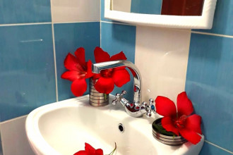 Большой ухоженный двор украшают яркие живые растения. Для тех, кто любит на отдыхе оставаться в сети интернет, работает зона покрытия Wi-Fi. Водоснабжение горячей и холодной воды, без перебоев - круглосуточно. На территории дома имеется мини-бар, где можно приобрести прохладительные напитки, соки, воды. Желающим отведать фирменный шашлык от хозяев дома - заказывают или по желанию могут приготовить в оборудованном мангале. В доме имеется просторная общая кухня - оборудованная бытовой техникой.