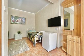 Добрый вечер! Нам очень нравится этот гостевой дом. Здесь всё классно! Море рядом, много кафе, столовых, магазинов, сувенирных лавок, развлечений для детей. В номерах комфортно, 2 больших кухни для самостоятельного приготовления- нет очереди. Удобная детская площадка. Парковка рядом. Рекомендую!!!