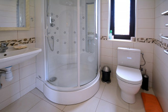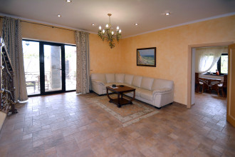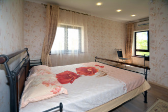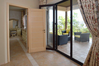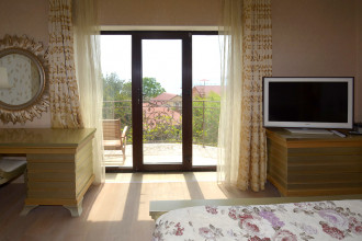 Правая половина дома: Первый этаж: гостиная, кухня-столовая, прачечная, санузел с душевой кабинкой, кладовка. Второй этаж: две независимые спальни (одна с панорамным балконом на море), просторный санузел с навороченным гидробоксом. Третий этаж: отдельная спальня и выход на общую для обоих половин дома террасу с креслами, столиками, шезлонгами и панорамой Фороса, моря и гор.