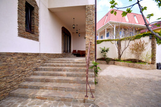 Своя часть двора с отдельным входом и въездом, парковкой на два авто, каменным столом и барбекю, террасой у входа в дом со столом и стульями.
