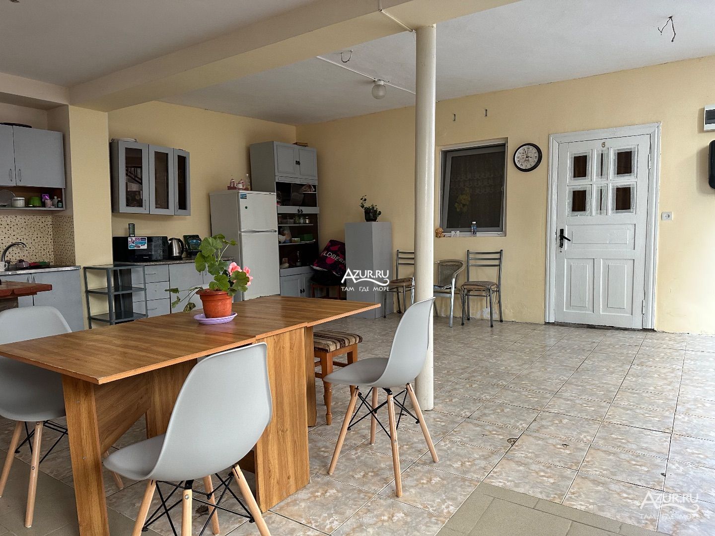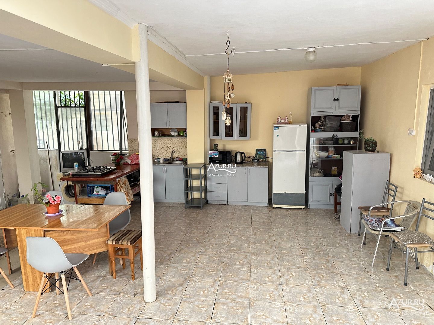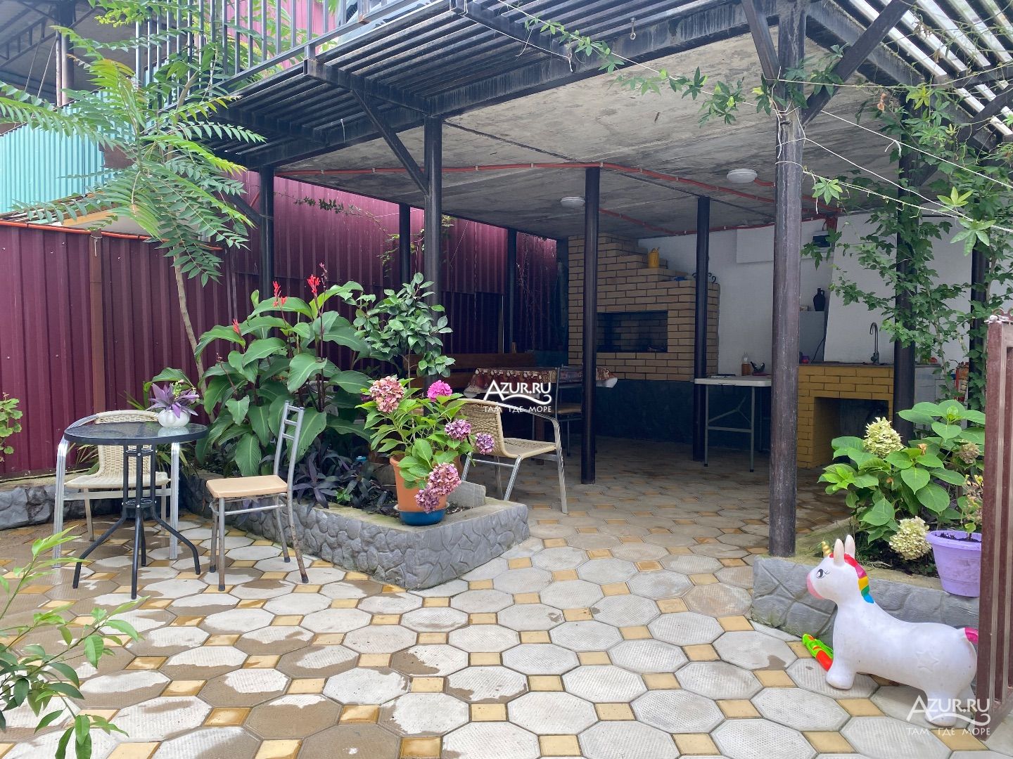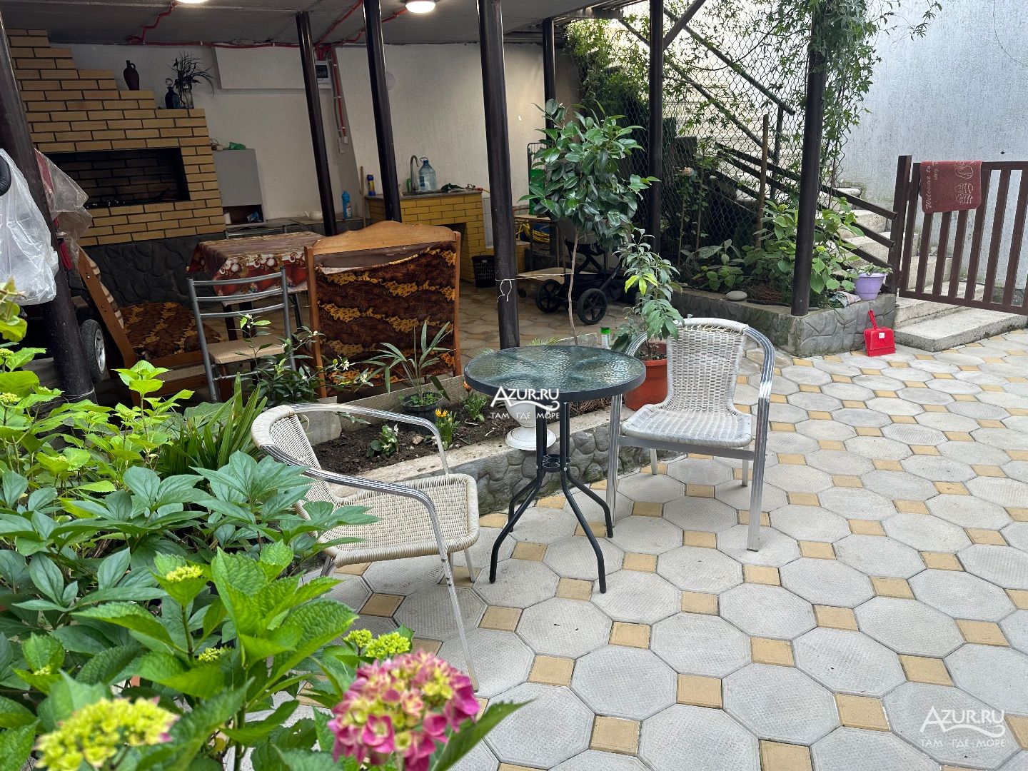 Небольшой дом в центре города Гагра. Путь до моря составляет 7 минут ходьбы. Рядом оборудованный широкий мелко галечный пляж. Пляж оснащен лежаками, зонтами, раздевалками, душевой кабиной. Множество морских развлечений: банан, скутера, полеты на параплане. По пути к морю расположены продуктовые магазины, кафе-столовые, магазины с пляжными принадлежностями, экскурсионные бюро, аптечный пункт. У моря парковая зона.