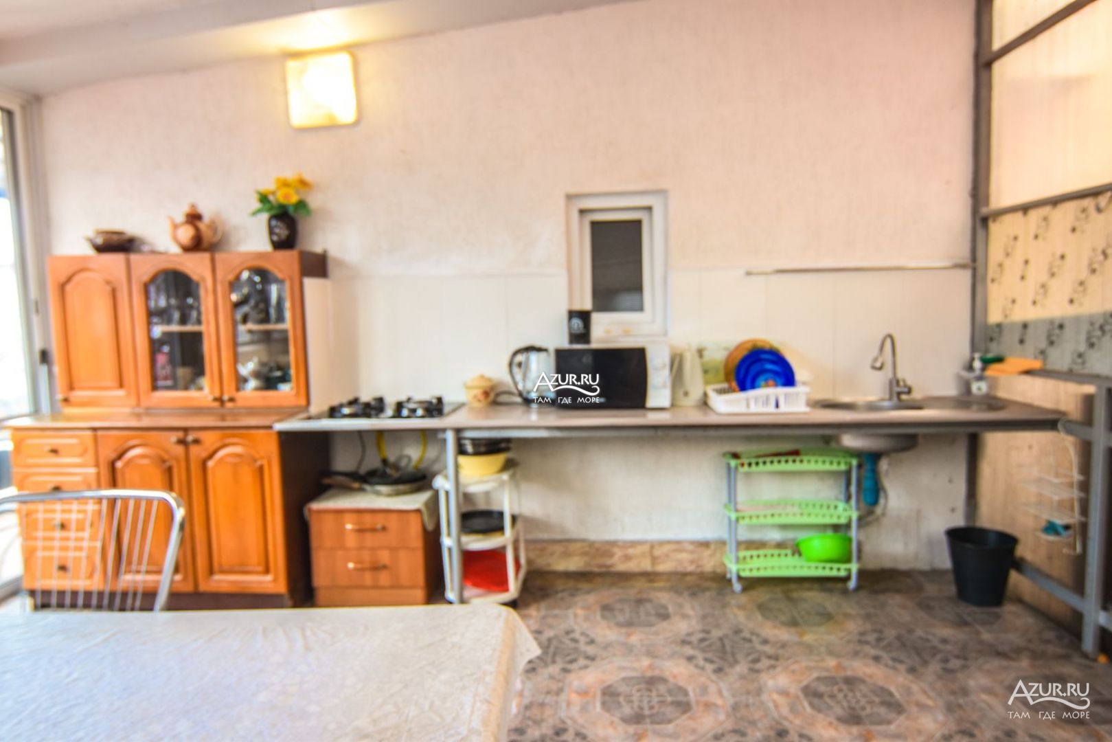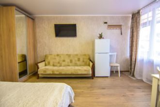 Отдыхали с друзьями в данном доме. Территория прекрасная, есть небольшой бассейн, общая кухня, где есть все для приготовления, гладильная доска утюг. У каждого номера есть столик, где можно покушать и отдохнуть. Номер очень тесный, все старое и разваливается. В номере были тараканы, но хозяйка сказала что это мы их привезли. По ее мнению мы видимо из помойки к ней приехали отдохнуть, кондиционер работал плохо, вечно отключался, были проблемы с электричеством,хозяйка сказала, что это из-за нас, пока мы не приехали такого не было говорит. Холодильник под конец отдыха тоже еле дышал уже, он у нее судя по внешнему виду стоит там со времен динозавров. Ветром ночью вырвало дверь в ванную комнату, хозяйка опять же сказала, что это из-за нас и закрыла дверь на ключ. Дальше мол писайте в штаны. Один раз ночью соседи чуть не устроили пожар на кухне, мы отключили газ и потушили, на что хозяйка ответила «ночью спать надо, а не следить кто что делает». Вот такая благодарность за спасения ее бизнеса. Уборка в номерах самостоятельная, но за 2 недели отдыха мы не нашли ни одной тряпки, чтоб протереть полы, пришлось «мыть» влажными салфетками. Из плюсов: хорошее расположение, рядом пляж, магазины, развлечения, рынок, много столовых. Насчет хозяйки: отвратительная женщина, общается по хамски, пытается содрать как можно больше денег, вечно во всем обвиняет. Только из-за такого отношения не хочется больше возвращаться. На вокзале нас встречали, водитель стоял где-то далеко от вокзала, связь была по телефону с ним, даже не смог объяснить где находится. Просто представьте, приехали в незнакомый город, незнакомый вокзал и ищите какого-то незнакомого человека, который не может дать ориентир и даже назвать марку машины своей на которой он приехал.