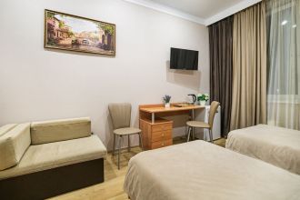 "Анфиса" расположен в центре города – курорта Геленджик, в 250 метрах от моря. В шаговой доступности вся инфраструктура курорта 17 современных комфортабельных номеров категории "Стандарт" и "Семейный люкс", "Студио делюкс". Все номера с балконами, оснащены системами индивидуального кондиционирования с пожарной сигнализацией, имеется холодильник, телевизор, безлимитный доступ в интернет.