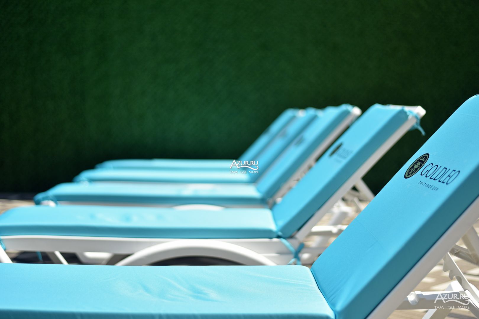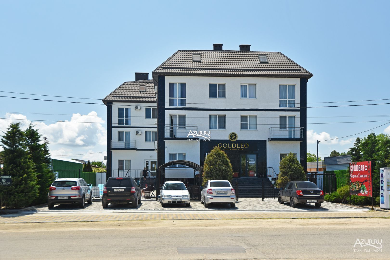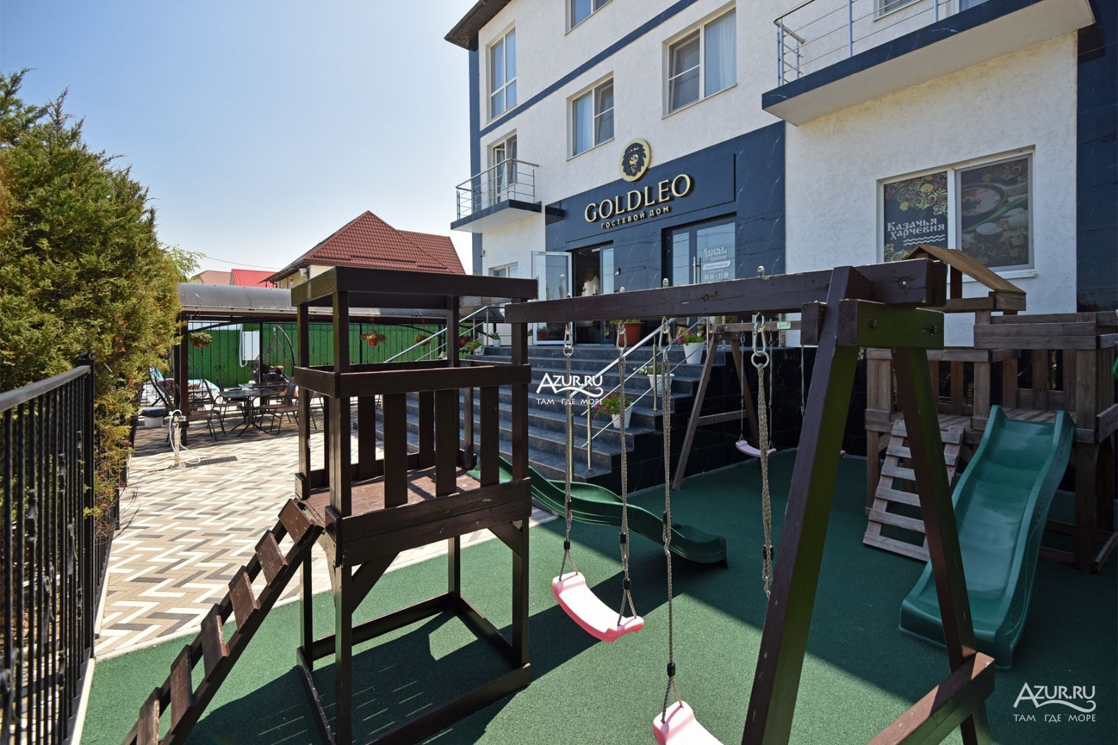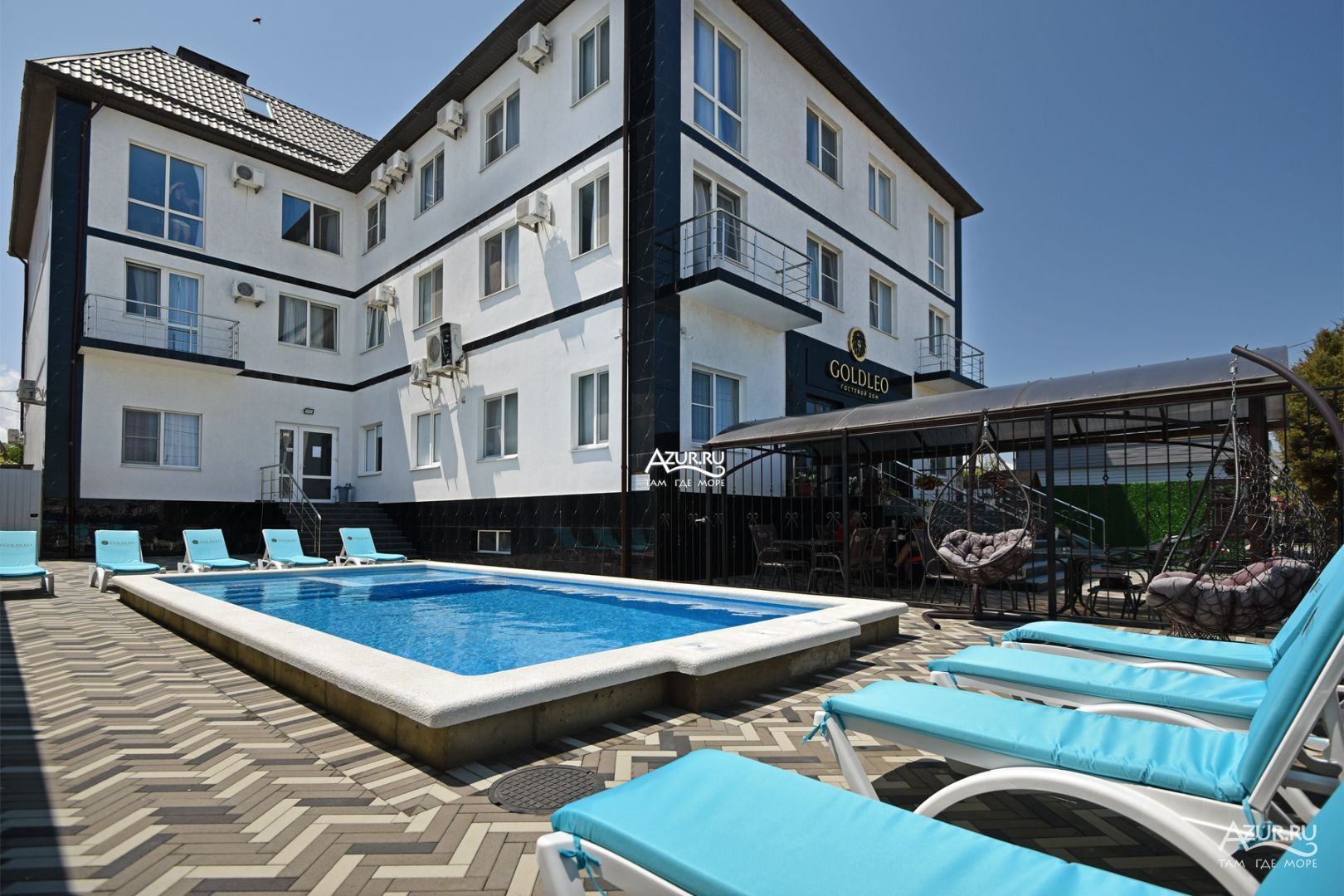 Отель "Goldleo" расположен в центральном районе поселка по улице Курортная, в двух минутах ходьбы от обустроенного пляжа. На территории расположены детская площадка, садовые качели, летние беседки, мангал с зоной отдыха. Имеется прокат велосипедов. Беcпроводной интернет Wi-fi доступен на всей территории.