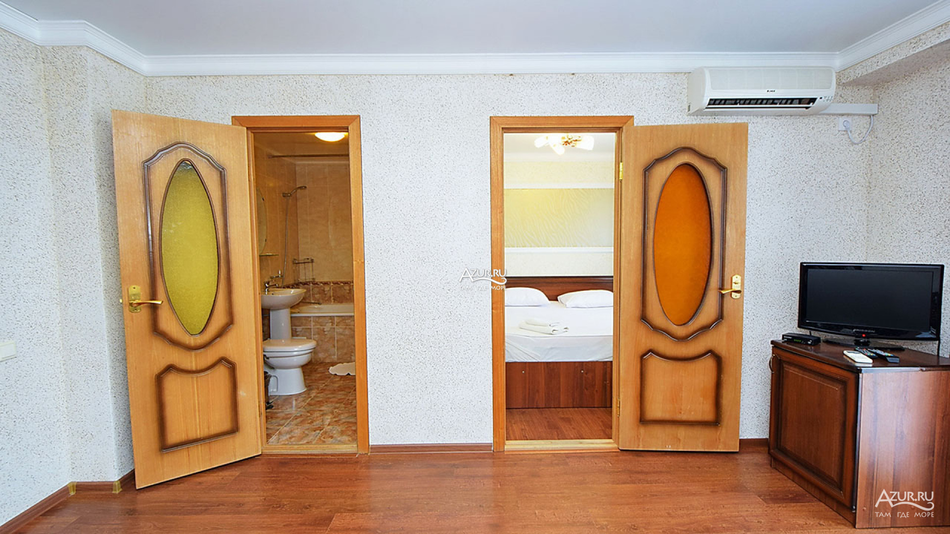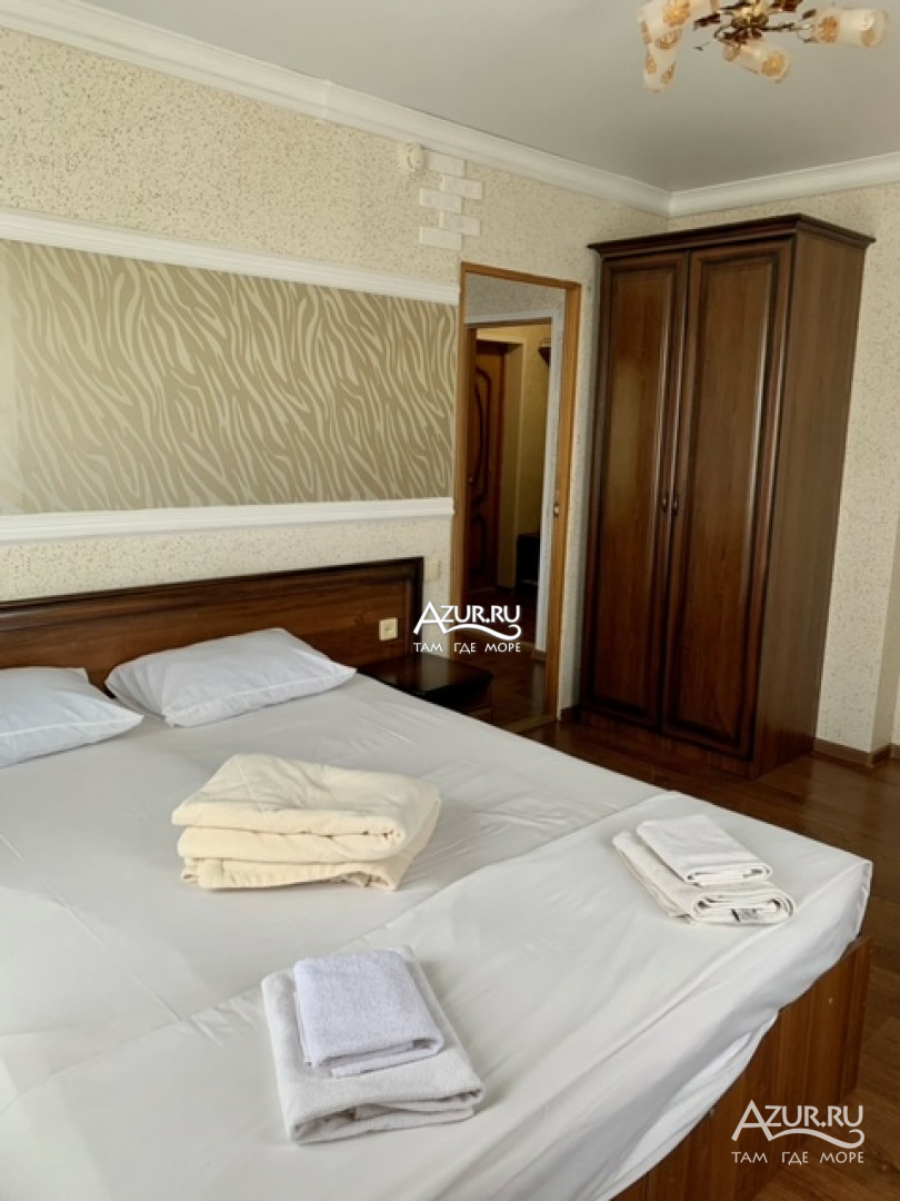 Мебель: в номере сплит-система, телевизор, спутниковое ТВ, интернет, сейф, холодильник, фен, посуда. Без балкона, с видом на море