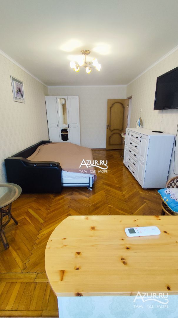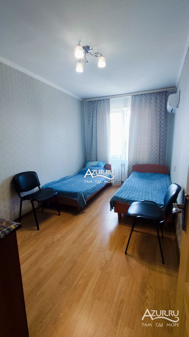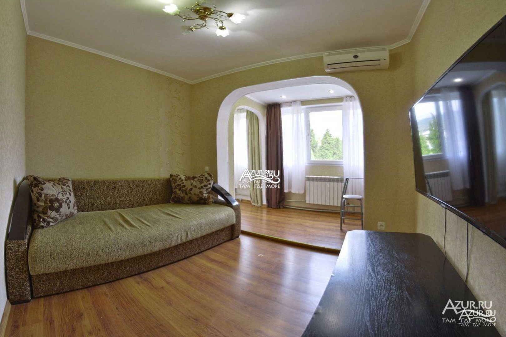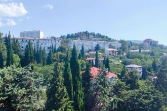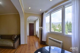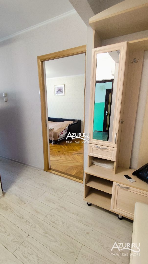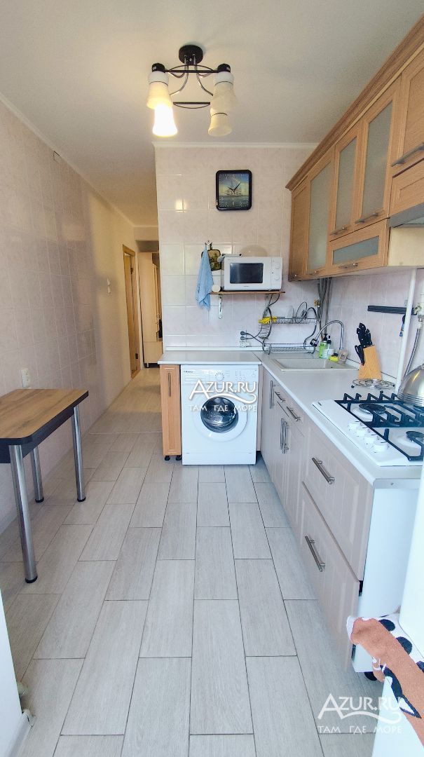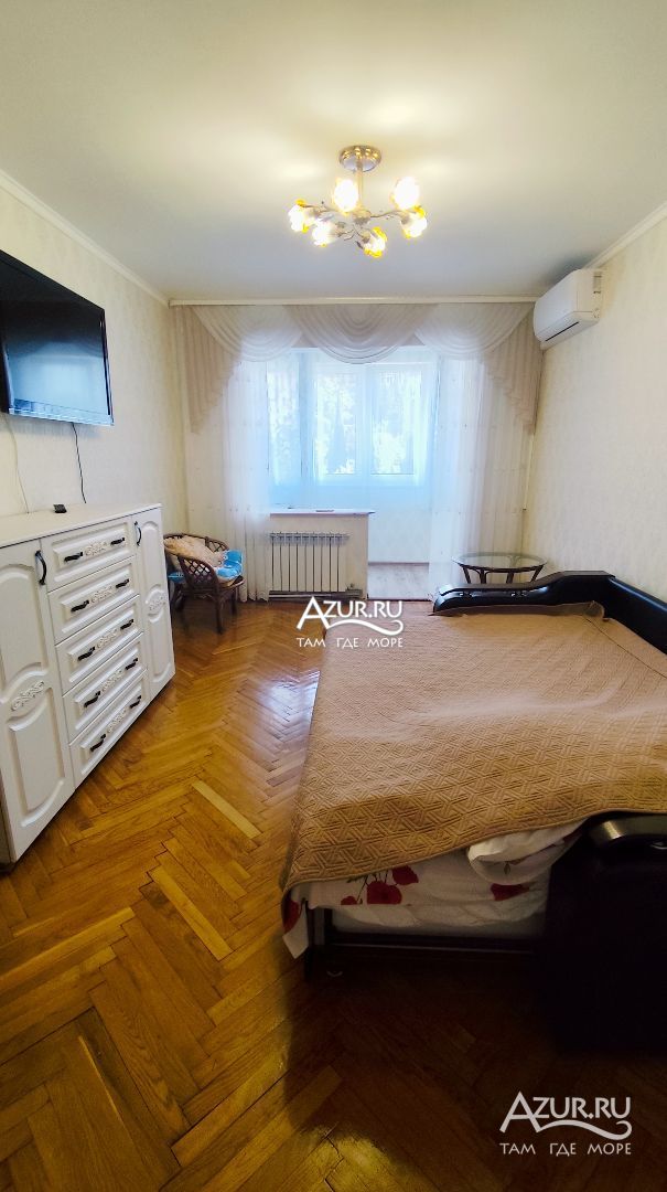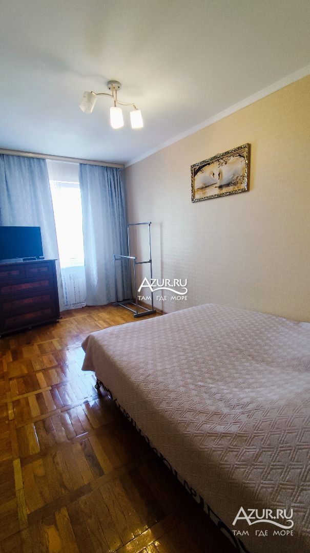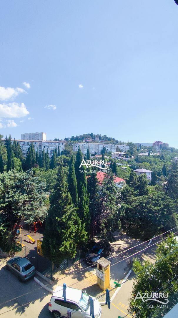 две изолированные спальни с ТВ, кухня, санузел и просторная лоджия с панорамным видом на Гурзуф. Хороший ремонт. Стиральная машина. До моря 10 мин спуститься, 12 подняться. Два кондиционера