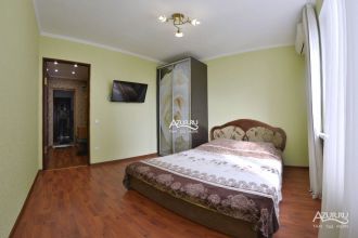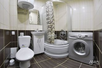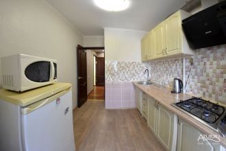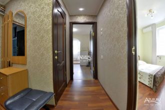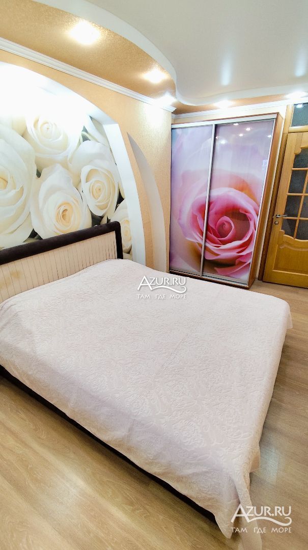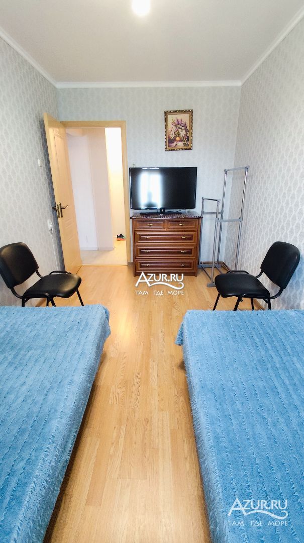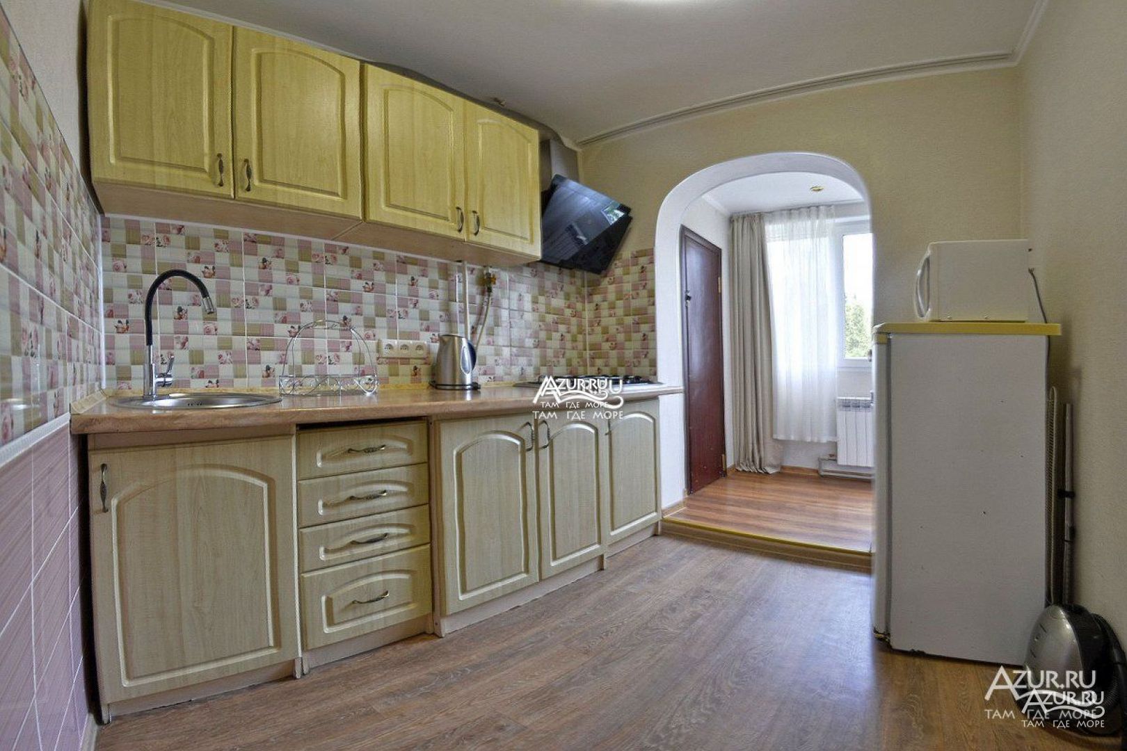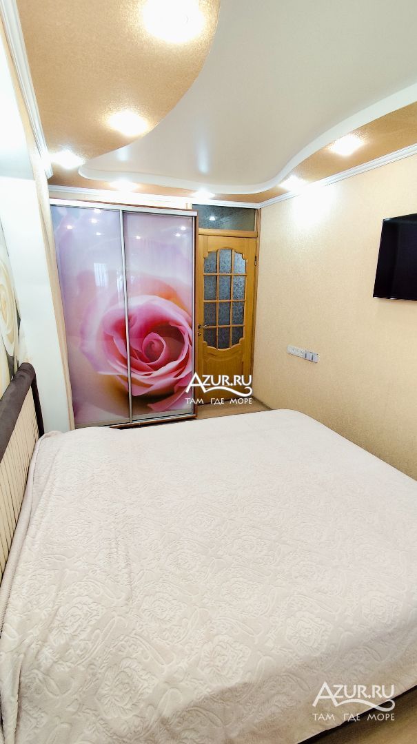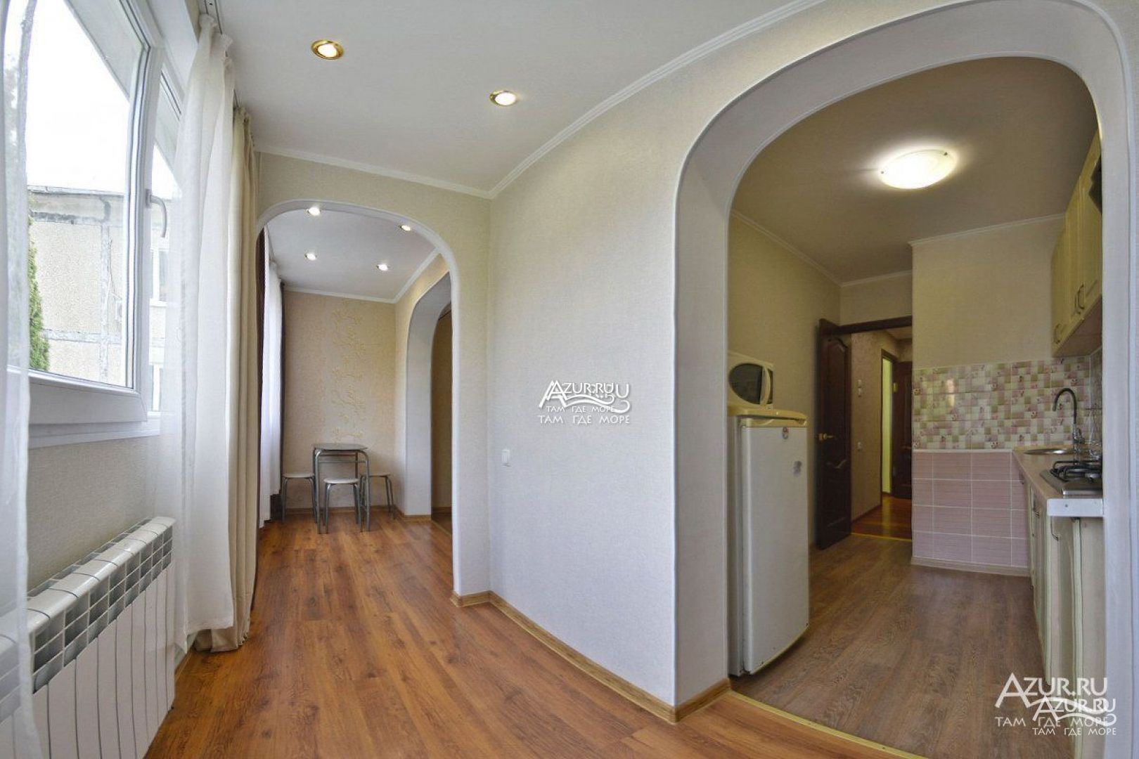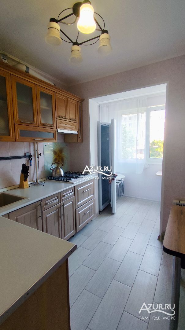 две изолированные спальни с ТВ, кухня, санузел и просторная лоджия с панорамным видом на Гурзуф. Хороший ремонт. Стиральная машина. До моря 10 мин спуститься, 12 подняться. Два кондиционера