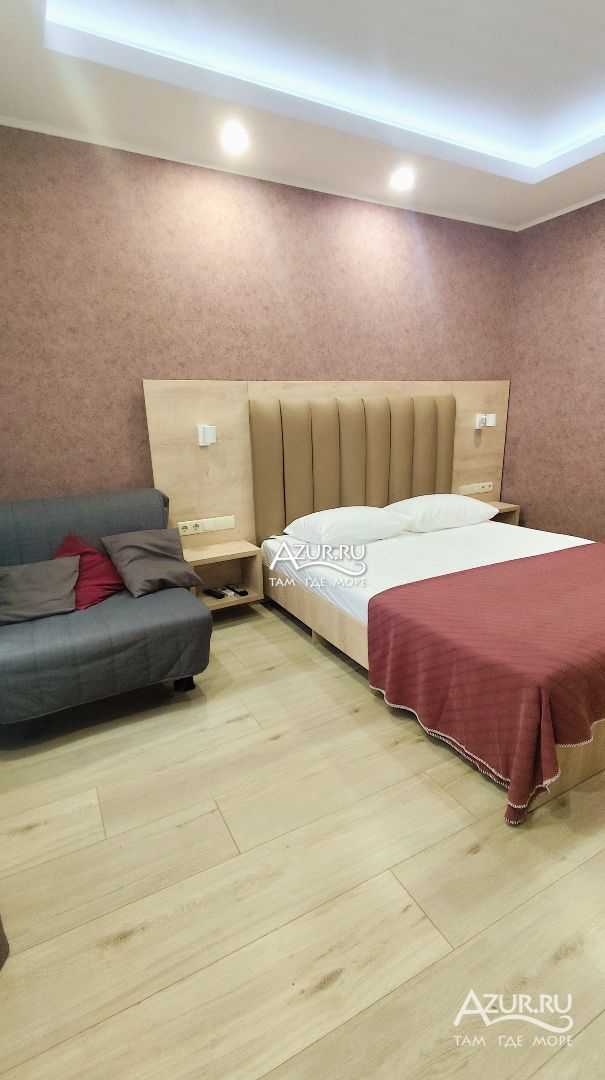Мебель: двухспальная кровать и диванчик