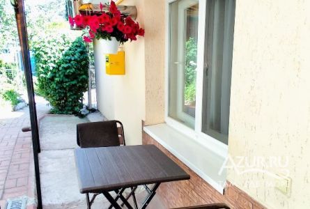 номер квартирного типа с проходной комнатой в частном секторе. Нюанс!: между комнатами нет двери!!! Около номера можно посидеть за столиком.