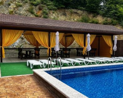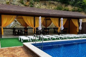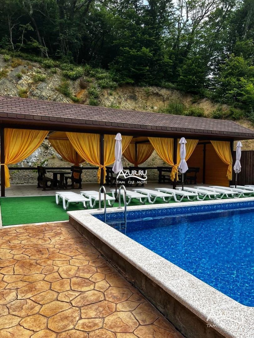 На территории имеется мангальная зона (мангал, шампура, казан, саджа, дрова бесплатно). Во дворе большой бассейн с зоной шезлонгов. Собственная парковка.