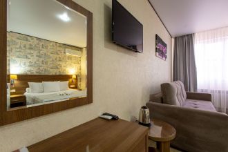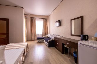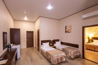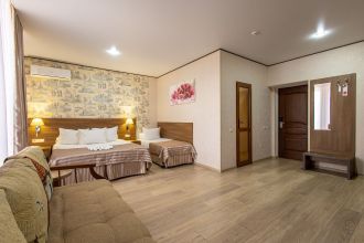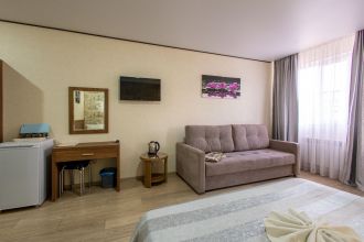 Всем привет! Отдыхали май2021. Очень довольны. 1.Территория:красивый, просторный внешний/внутренний двор! Бассейн: с подогревом, взрослый и детский. Безопасная игровая площадка. Вокруг бассейна дорожка и бортик противоскользящий!шезлонги, душ, туалет. Барбекю: мангалы, рабочая поверхность, вода - все продумано до мелочей! Столы, лавки под навесом. 2.Отель: просторный лобби, коридоры, столовая. Номер 5+: санузел: корзина, мыльные одноразовые принадлежности, бумага, фен-прилично сушит и укладку можно сделать. Полотенца: на каждого банное, среднее, для лица. И одно под ноги. Зеркало, тумбочки, тазик, стульчик. Супер удобные кровати, чистое белье, шторы блэкаут. Кондер, ТВ, холодильник, столик с зеркалом, шкаф, сейф. Просторный балкон: стол, табуретки, сушилка. Все чисто, мусор убирали каждый день. 3.Столовая: Все по домашнему! Большие порции, вкусно! На набережной не советую обедать! 4. Море. Ну да, не первая линия))) но нас не напрягало ходить, есть 2 пути : а)через «центр»: парк, магазины, лавочки со вкусняшками б)через аллею выход к чертовому колесу (там пляж отличный и мало людей). ♥️♥️♥️И главное - это ребята, которые трудятся в отеле! Милые, улыбчивые с отличным чувством юмора! Спасибо за Релакс, отдых, уют, который каждый день вы создаёте! Желаем отзывчивых гостей , процветанию отелю и доброго здоровья! С уважением, Катя и Юля P/s именинный торт доехал до Абрау-Дюрсо и был окончательно «уничтожен» любителями сладкого????
