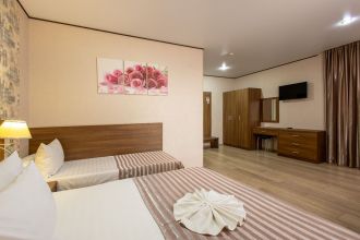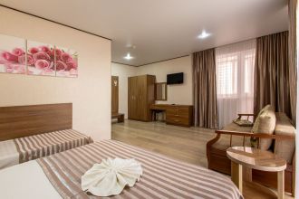 Гостиница неплохая. Хороший бассейн, чисто, новая мебель и бытовая техника. Персонал вежливый. Но есть и претензии.... цена летом на размещение высокая, выше чем в других местах примерно такого же уровня. Я думаю что из-за большого бассейна, хотя на море бассейн не актуален и является лишь приятным бонусом. Если прибавить по 250 руб. на человека за завтраки, то это еще дополнительно 500-1000 руб плюс к цене. Получается уже чересчур! А это уже навязывание услуги. Можно завтракать дешевле в кафе или просто перекусить в номере. К тому же многие вообще не завтракают, а обходятся чашкой чая или кофе. В общем я считаю цена здесь явно завышена.