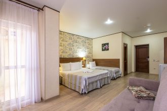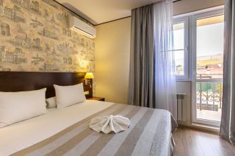 Отдыхали в сентябре этого года, шикарный отель, есть территория под стоянку, действительно большой бассейн, удобные балконы с мебелью, уборка проводилась каждый день, без всяких просьб, хотя на сайте написано, что один раз в три дня. Все администраторы очень приветливые, до моря 500 метров, обязательно вернёмся туда, так как все очень понравилось.
