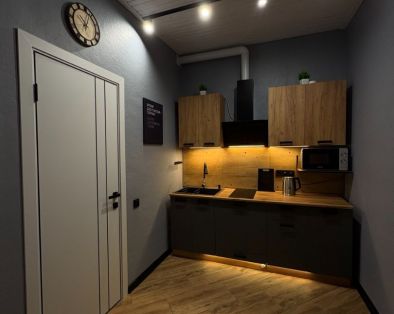 В номере есть все необходимое для проживания это кухня гостинная (с диваном 1,40 на 2 метра и двуспальной кроватью 1,80 на 2 метра ,обеденный стол ,смарт телевизор, панорамные окна ,шторы блекаут ,сплит система, шкаф для вещей )прихожая со шкафом, санузел, душевая. Есть Wi Fi. Все абсолютно новое ,25 года постройки.