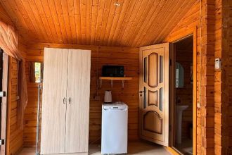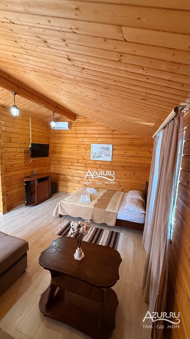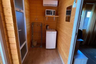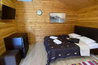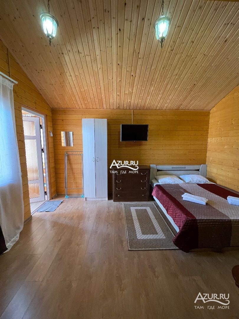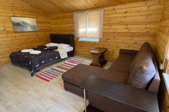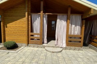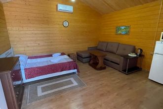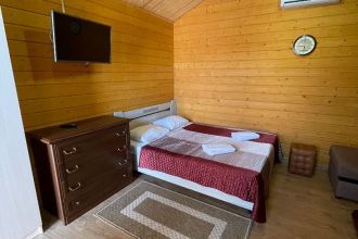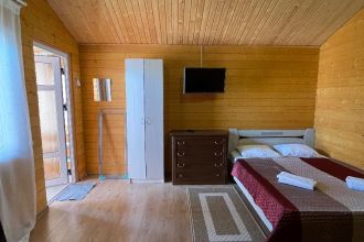 Номера оборудованы всем необходимым: душ, туалет, сплит-система, холодильник, новая мебель и прочее. Также для семейного проживания или несколькими компаниями предлагаются отдельные домики из бруса вместительностью 4-5 человек. Домики со своей мебелированой террасой для отдыха.