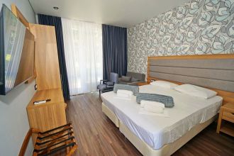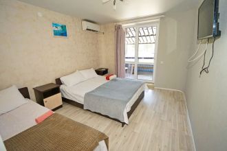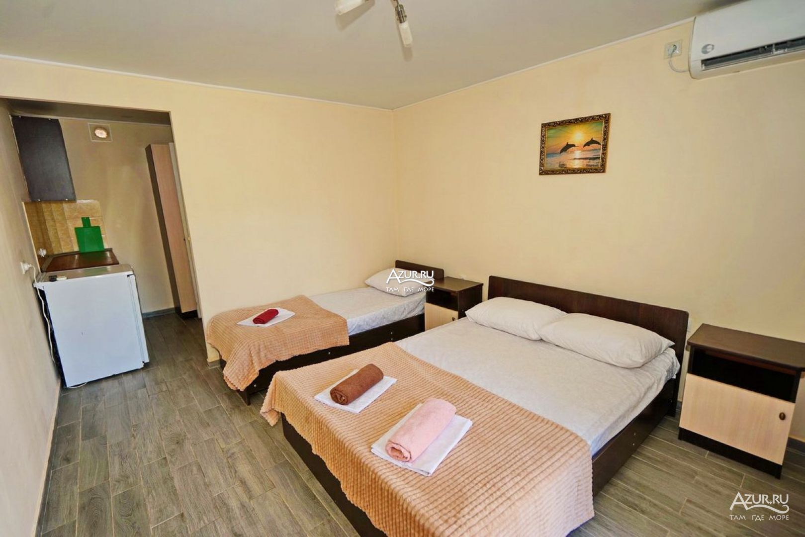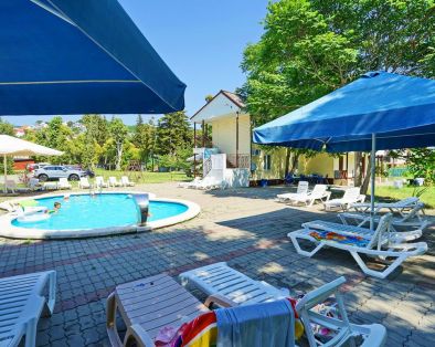 В номерах "Комфорт": душ-туалет, холодильник, телевизор, кондиционер. Каждый корпус, имеется кухня для самостоятельного приготовления. Также есть возможность организовать комплексное питание в столовой. Работает бесплатный Wi-Fi. Есть отдельная детская зона, качели, турники. Предусмотрено место для отдыха, мангал. На территории капитальный бассейн 8х5.