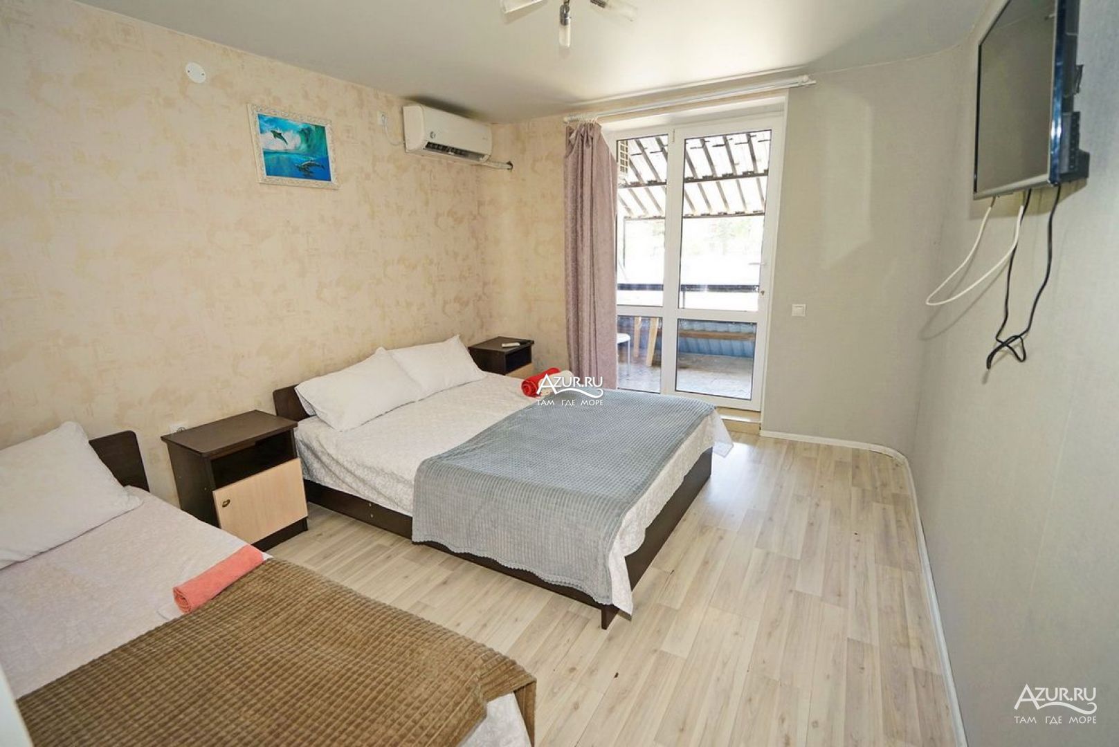 Мебель: двуспальная кровать, две односпальные кровати, шкаф, столик, тумбочки