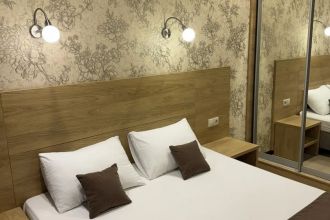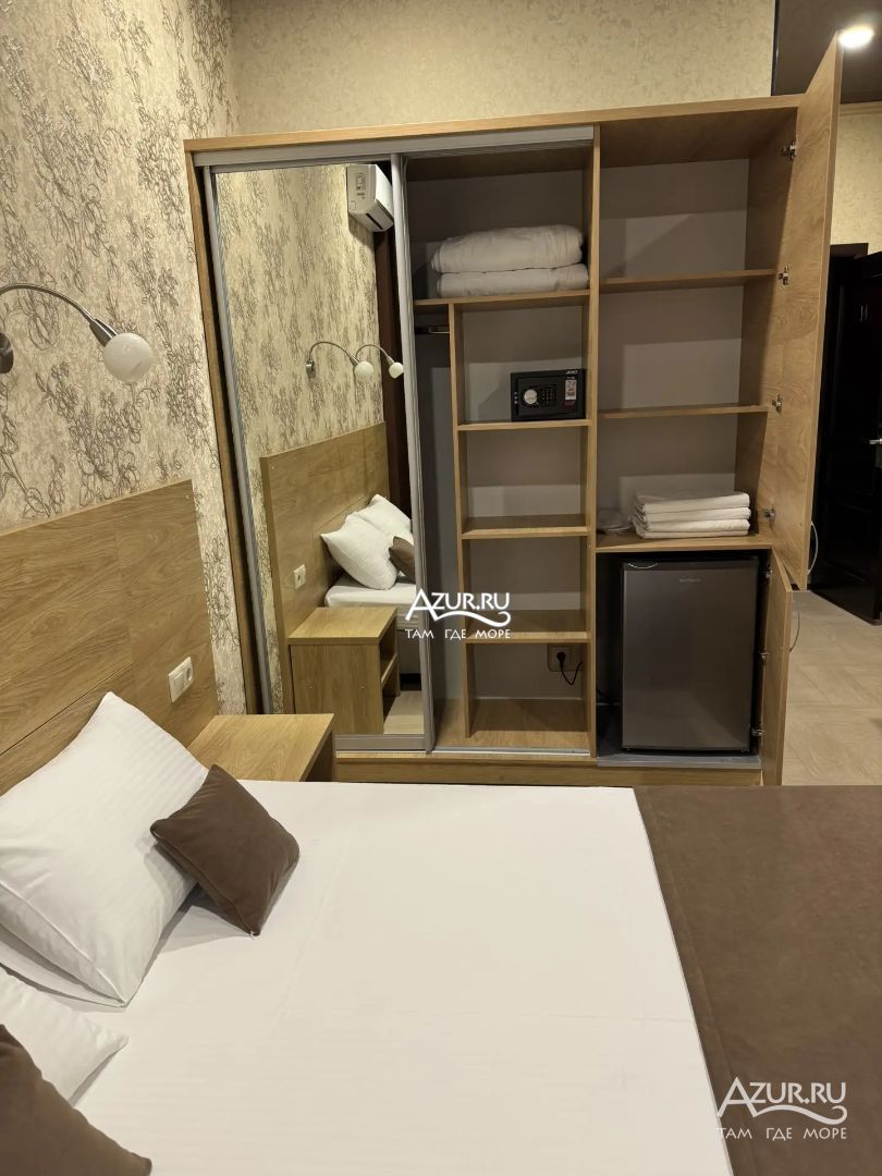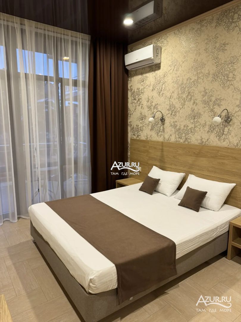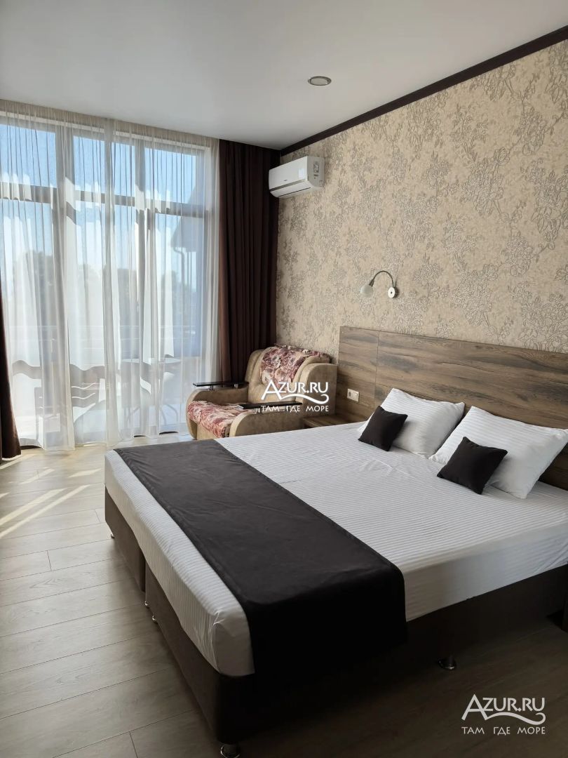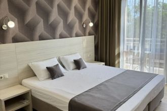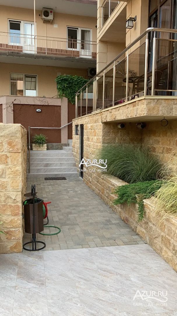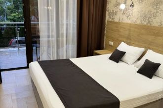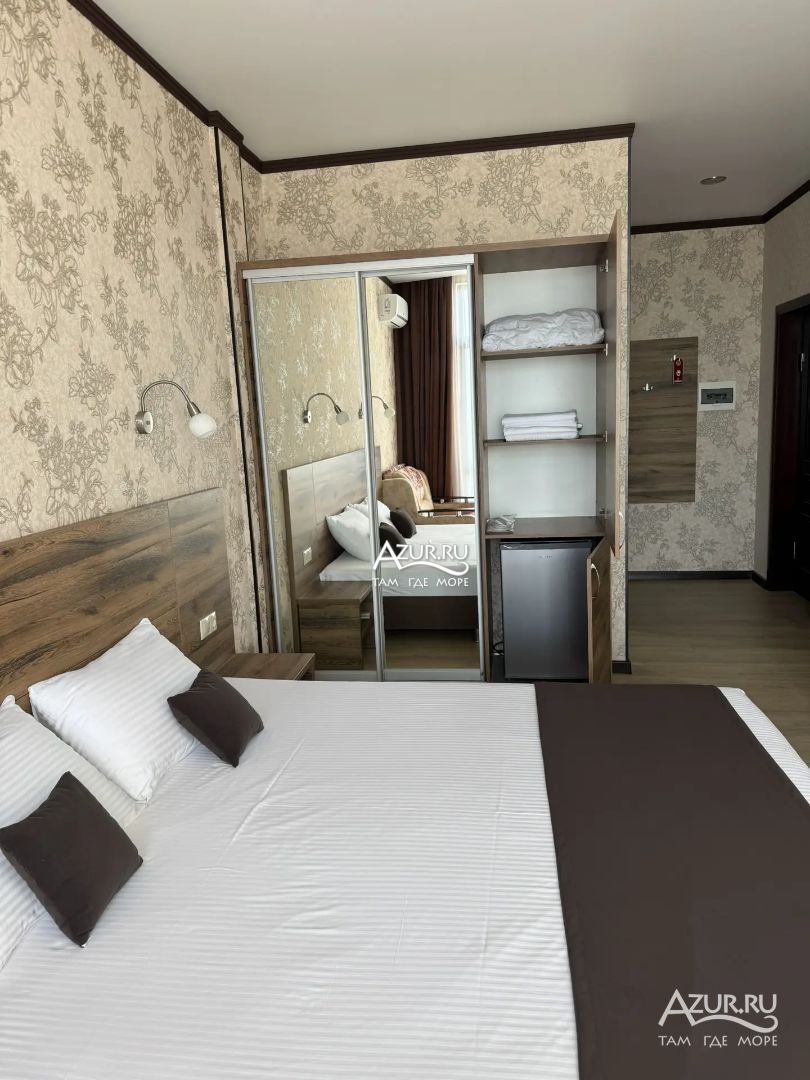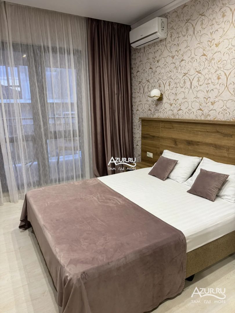 Замечательный отель. Все лучше, чем ожидали! Красивый, новый, современный, чистый, соответствует хорошему заграничному отелю. Видно сразу, всё сделано "со вкусом". Благоустроенная и ухоженная территория вокруг, просторная стоянка, цветочные клумбы, световое оформление. Номера отличные, все необходимое в номере: сплит-система, телевизор ЖК, хорошая кровать, удобные подушки, чистое бельё, белоснежные полотенца, бельевой шкаф, холодильник, сейф, стол, стул, графин со стаканами, индивидуальные гигиенические принадлежности (мыло, шампунь, гель для душа), удобные шторы блекаут. Санузел в номере. У нашего номера был балкон с видом на море, на балконе стол и 2 стула, сушилка для белья. Уборка номера раз в три дня, замена полотенец. На на третьем этаже, на котором мы жили, имеется мини-кухня, где можно разогреть еду в микроволновке, воспользоваться приборами, раковина. На втором этаже общая кухня, где можно приготовить еду самостоятельно, а так же стоит стол со стульями. До моря пешком 4-6 минут и сразу попадаешь на пляж Дельфин, пляж хороший , чистый, за отдельную плату предоставляются лежаки. Вокруг отеля много мест где можно покушать: кафе, шашлычные, столовые. Местность где располагается отель не шумная, относительно центра Лазаревского. Если хотите повеселиться, то вам на пляж, там есть кафе с вечерней шоу-программой. В общем из минусов отдыха то, что отпуск-это временно, и он заканчивается когда-то))