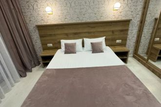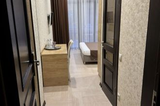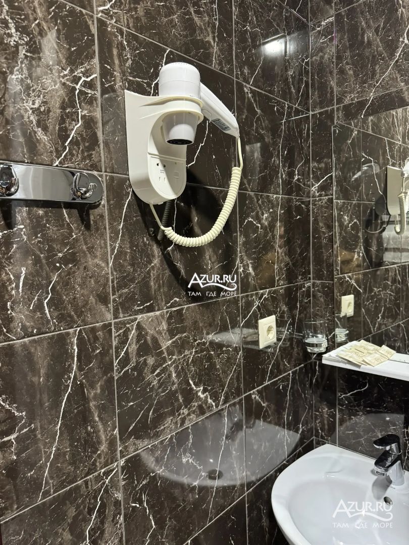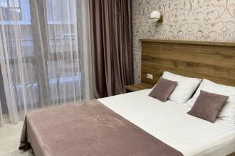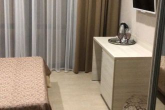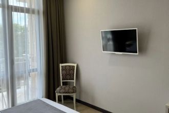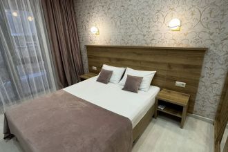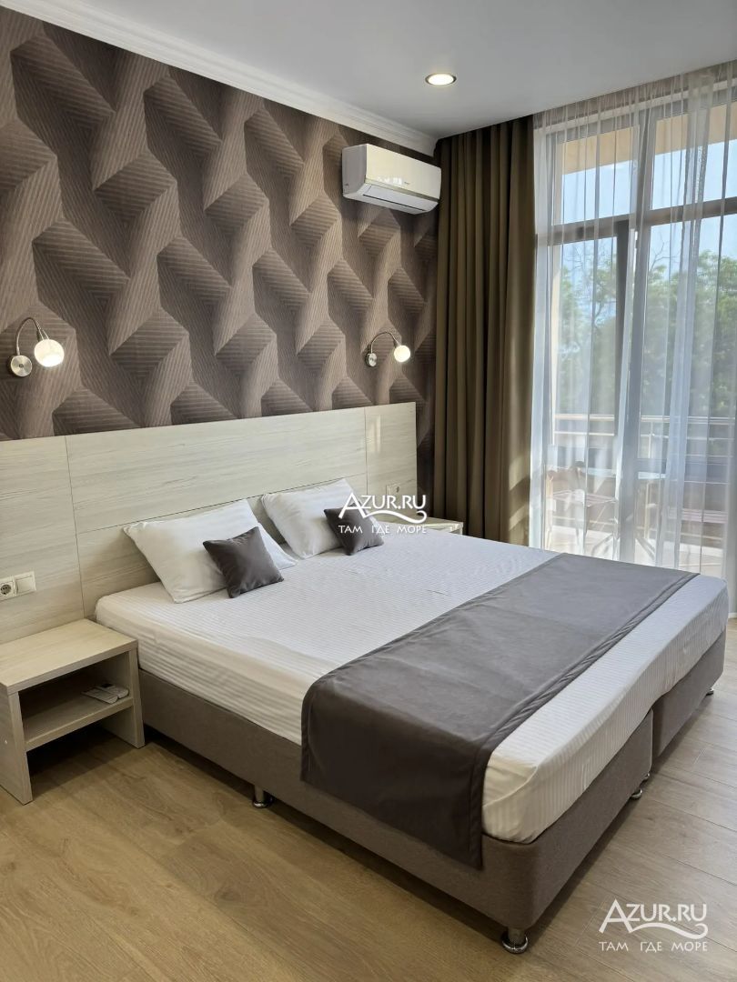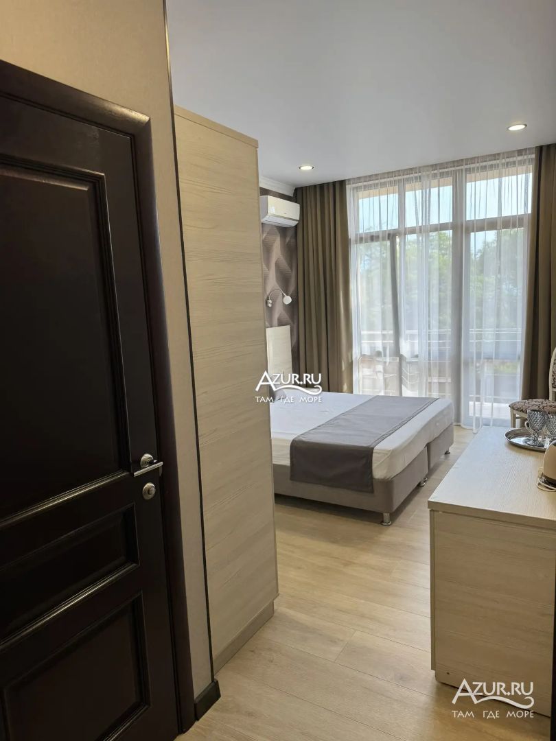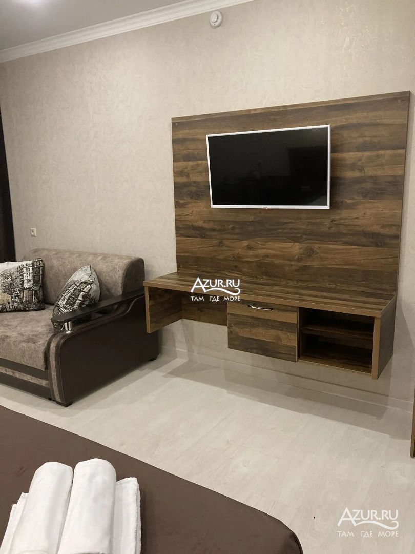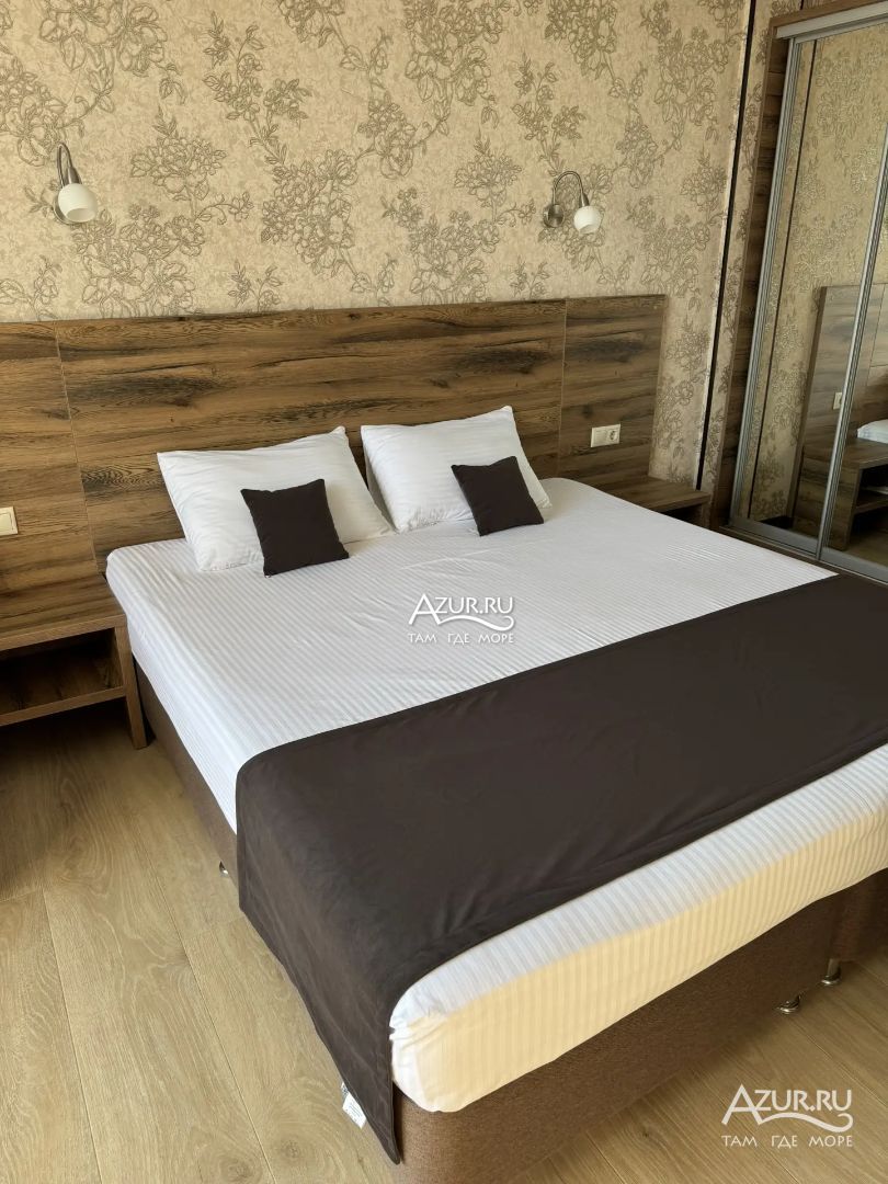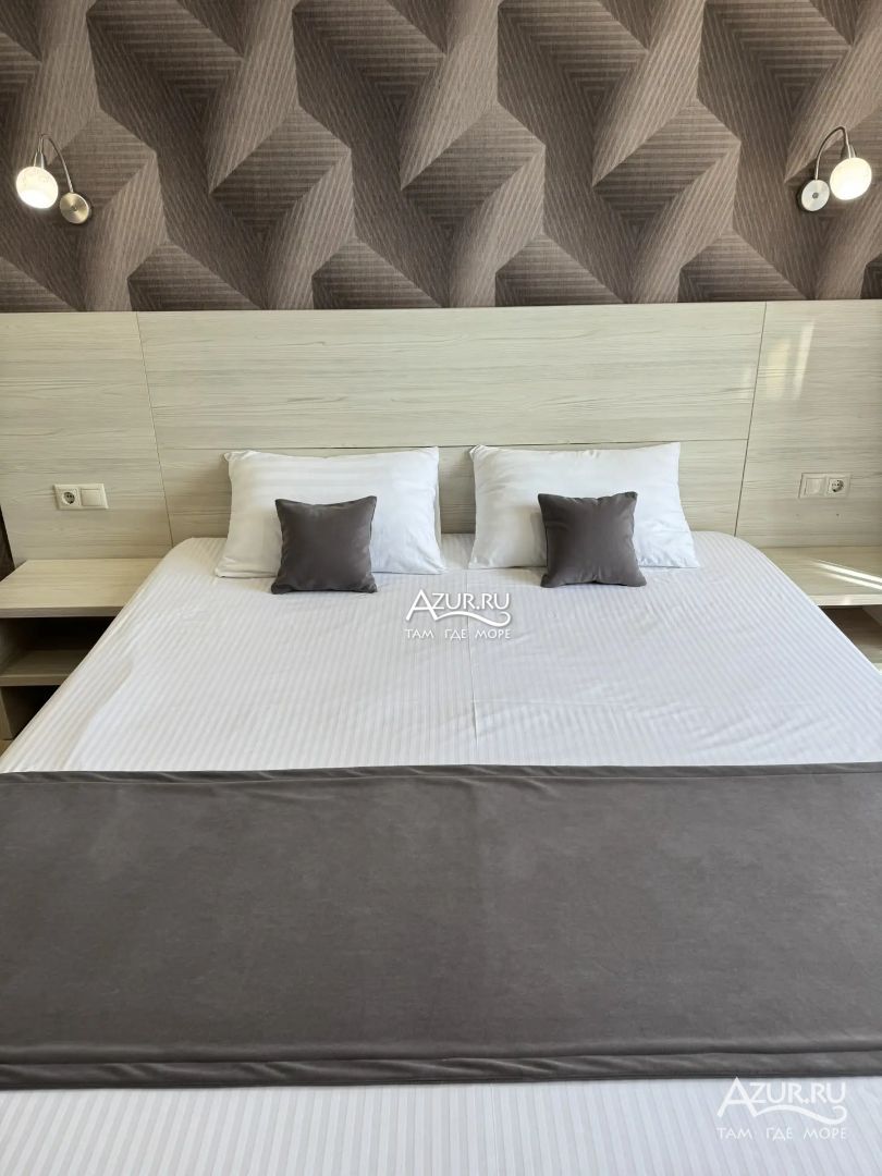Замечательный отель. Все лучше, чем ожидали! Красивый, новый, современный, чистый, соответствует хорошему заграничному отелю. Видно сразу, всё сделано "со вкусом". Благоустроенная и ухоженная территория вокруг, просторная стоянка, цветочные клумбы, световое оформление. Номера отличные, все необходимое в номере: сплит-система, телевизор ЖК, хорошая кровать, удобные подушки, чистое бельё, белоснежные полотенца, бельевой шкаф, холодильник, сейф, стол, стул, графин со стаканами, индивидуальные гигиенические принадлежности (мыло, шампунь, гель для душа), удобные шторы блекаут. Санузел в номере. У нашего номера был балкон с видом на море, на балконе стол и 2 стула, сушилка для белья. Уборка номера раз в три дня, замена полотенец. На на третьем этаже, на котором мы жили, имеется мини-кухня, где можно разогреть еду в микроволновке, воспользоваться приборами, раковина. На втором этаже общая кухня, где можно приготовить еду самостоятельно, а так же стоит стол со стульями. До моря пешком 4-6 минут и сразу попадаешь на пляж Дельфин, пляж хороший , чистый, за отдельную плату предоставляются лежаки. Вокруг отеля много мест где можно покушать: кафе, шашлычные, столовые. Местность где располагается отель не шумная, относительно центра Лазаревского. Если хотите повеселиться, то вам на пляж, там есть кафе с вечерней шоу-программой. В общем из минусов отдыха то, что отпуск-это временно, и он заканчивается когда-то))