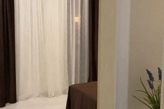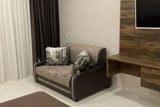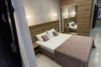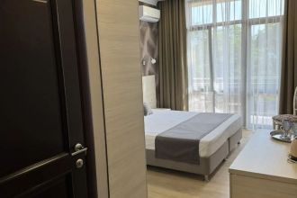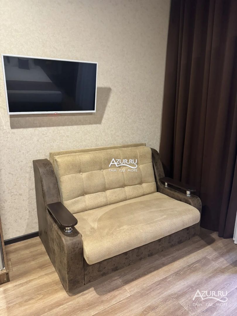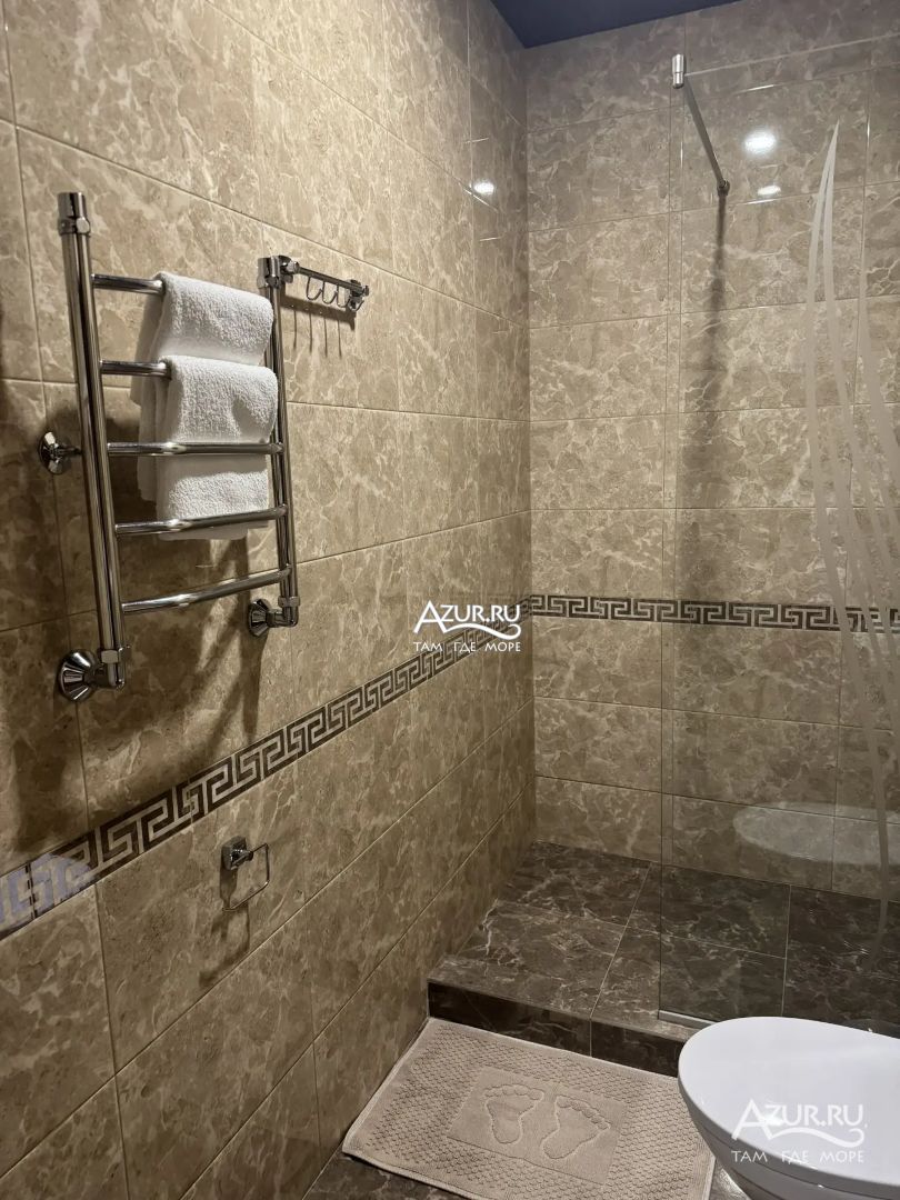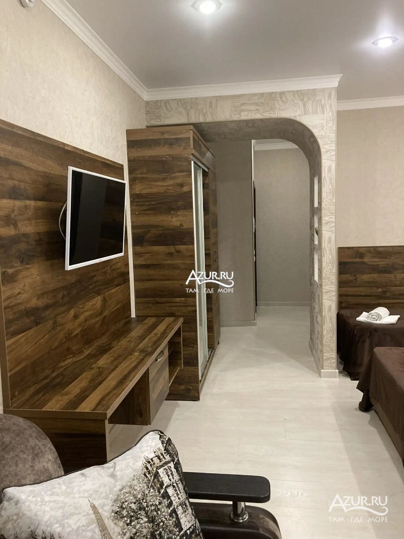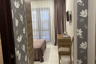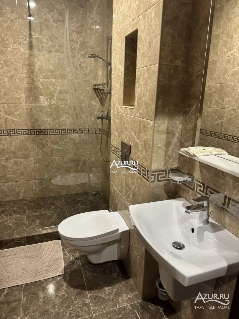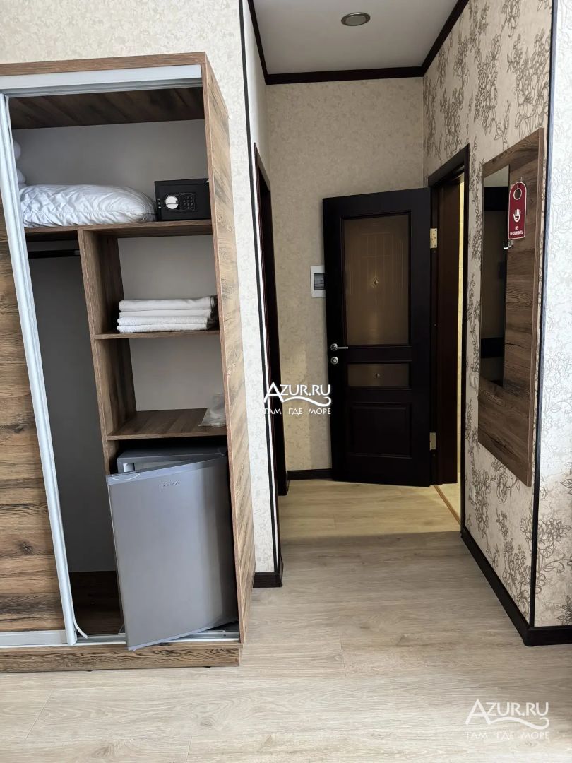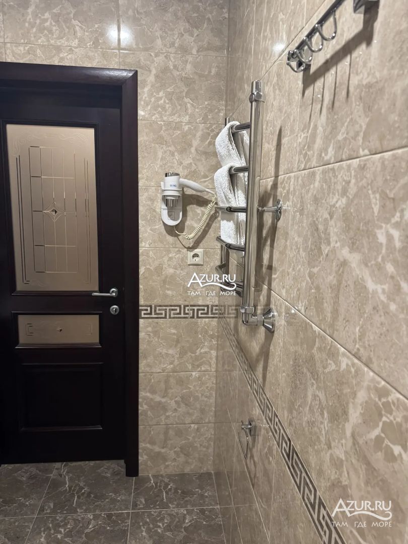 Замечательный отель. Все лучше, чем ожидали! Красивый, новый, современный, чистый, соответствует хорошему заграничному отелю. Видно сразу, всё сделано "со вкусом". Благоустроенная и ухоженная территория вокруг, просторная стоянка, цветочные клумбы, световое оформление. Номера отличные, все необходимое в номере: сплит-система, телевизор ЖК, хорошая кровать, удобные подушки, чистое бельё, белоснежные полотенца, бельевой шкаф, холодильник, сейф, стол, стул, графин со стаканами, индивидуальные гигиенические принадлежности (мыло, шампунь, гель для душа), удобные шторы блекаут. Санузел в номере. У нашего номера был балкон с видом на море, на балконе стол и 2 стула, сушилка для белья. Уборка номера раз в три дня, замена полотенец. На на третьем этаже, на котором мы жили, имеется мини-кухня, где можно разогреть еду в микроволновке, воспользоваться приборами, раковина. На втором этаже общая кухня, где можно приготовить еду самостоятельно, а так же стоит стол со стульями. До моря пешком 4-6 минут и сразу попадаешь на пляж Дельфин, пляж хороший , чистый, за отдельную плату предоставляются лежаки. Вокруг отеля много мест где можно покушать: кафе, шашлычные, столовые. Местность где располагается отель не шумная, относительно центра Лазаревского. Если хотите повеселиться, то вам на пляж, там есть кафе с вечерней шоу-программой. В общем из минусов отдыха то, что отпуск-это временно, и он заканчивается когда-то))