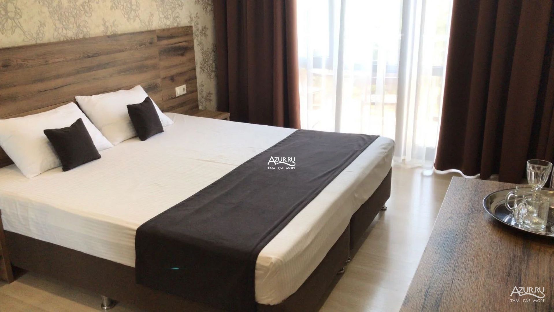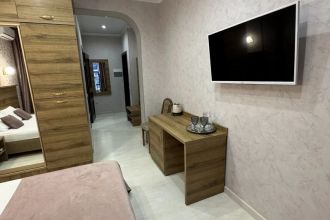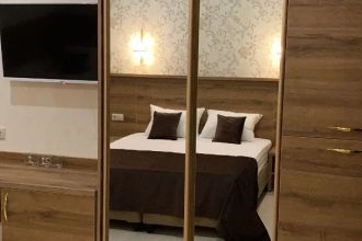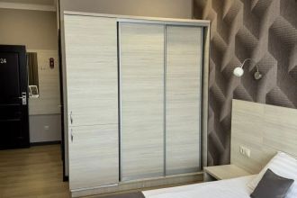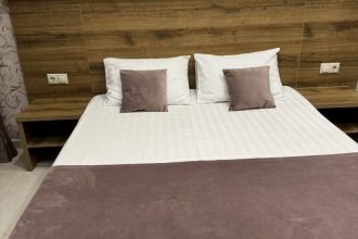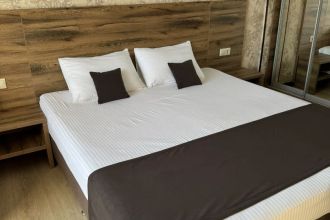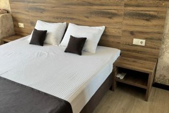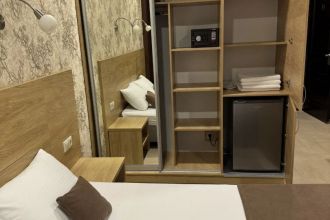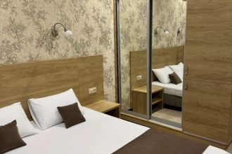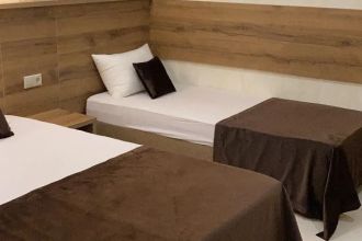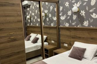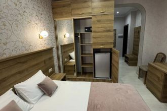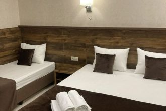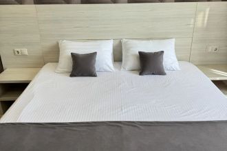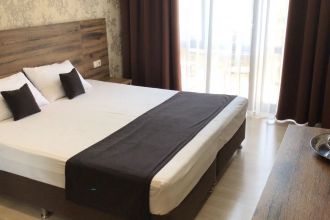 Просторные с хорошим интерьером и всеми удобствами номера. В каждом номере, а именно: двуспальная кровать, шкаф, тумбочки, телевизор, холодильник, кондиционер, фен, душ, сейф и балкон. В отеле имеются 2-х и 3-х местные номера.