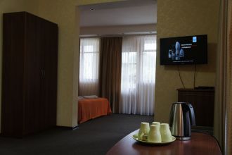 Отдыхали семьей в гостинице "Пальмик" с 21 сентября по 5 октября. Остались очень довольны. Все, что написано и изображено на сайте соответствует действительности. Место расположения гостиницы очень удобное-и в центре, и в то же время тишина и покой. Жили в номере с террасой, уютно и удобно, терраса, довольно большая по площади, как третья комната-на ней холодильник, три стула, стол, сушилка для белья и комодик для разных вещей. На территории бассейн, муж с сыном постоянно купались, все вместе загорали в шезлонгах у бассейна. Понравилась территория гостиницы, немаленькая и симпатичная. Заказывали гостиницу через интернет, получили исчерпывающую информацию. Хозяин Григорий Николаевич встретил с поезда и отвез на вокзал при возвращении. В общем, отдохнули хорошо, за что большое спасибо хозяевам гостиницы!