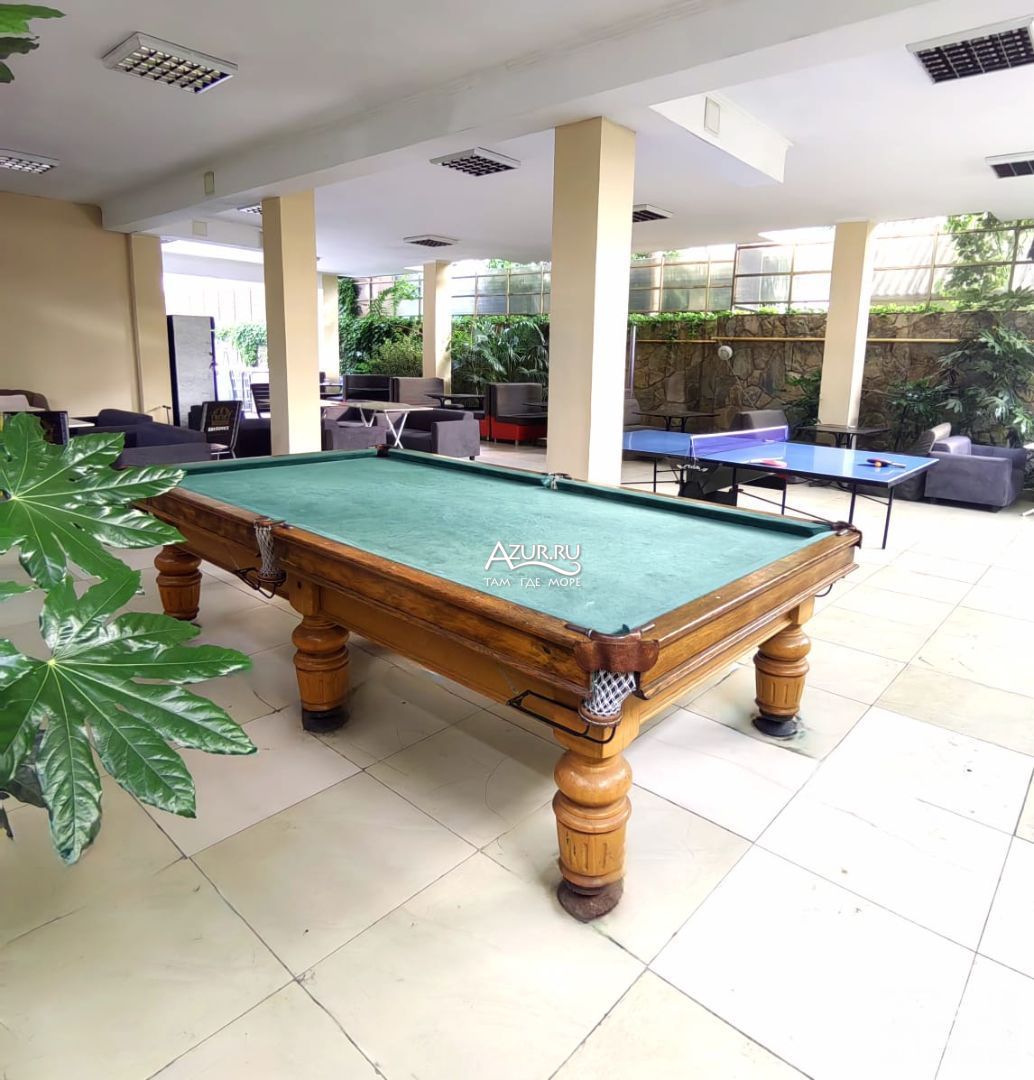 На территории дома есть внутренний двор, с комфортной зоной отдыха. Для Вас — настольный теннис и бильярд. Во дворе установлен бассейн, шезлонги и мангальная зона. Так же, есть кухня для самостоятельного приготовления пищи, со всей необходимой посудой.