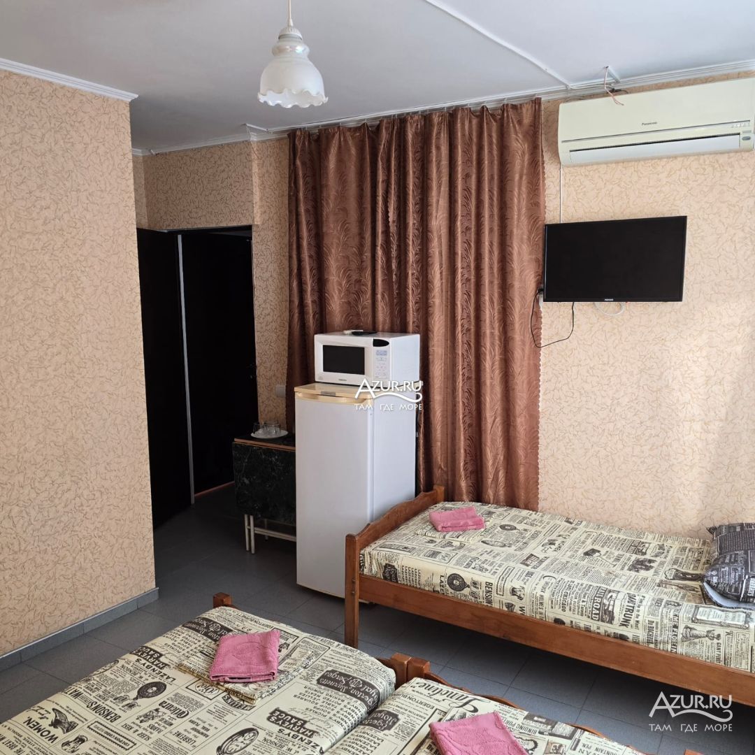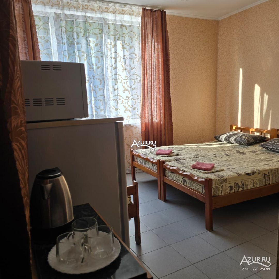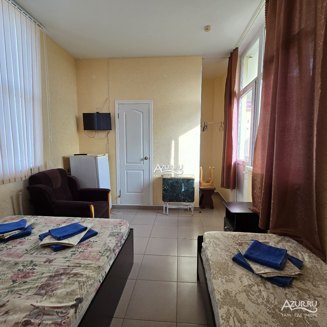 Встретили на вокзале, номер на троих. Администратор Татьяна каждое утро встречала вопросом: всё ли нам устраивает и комфортно ли нам спать?! Нам было хорошо: спали замечательно, парк через дорогу, кафе с комплексным и вкусным обедом на 1 этаже, пляж рядом. Балкон общий и длинный с видом на колесо обозрения, а из окна в номере вид на горы и церковь, купола которой, сверкают на солнце! Улица Павлова - это центр поселка, где пешком можно и на ж- д вокзал и на рынок сходить- все рядом. Советую всем это место!