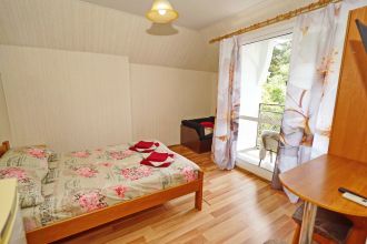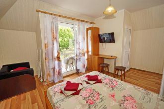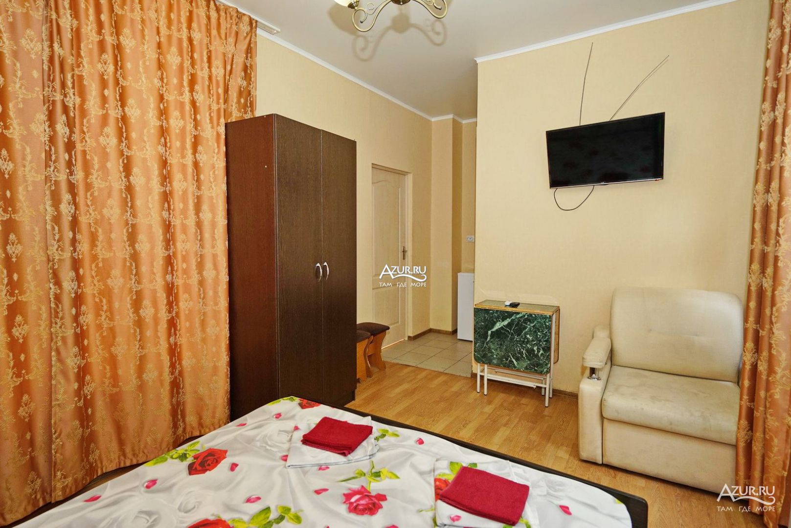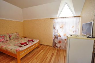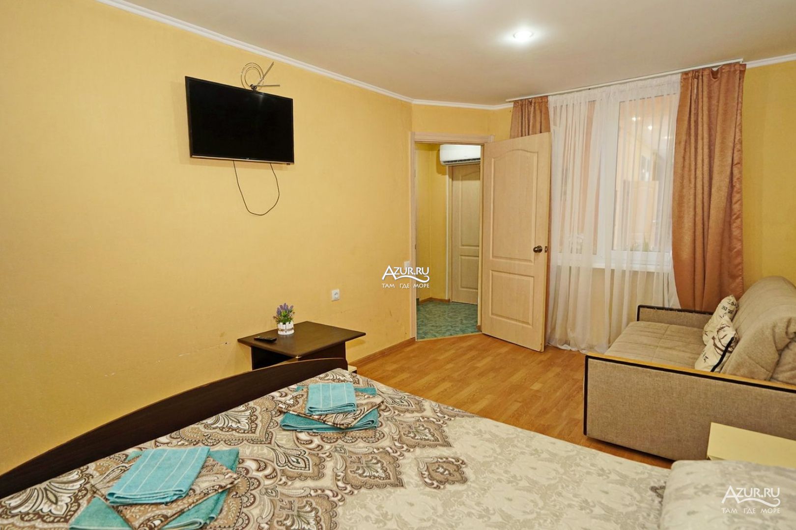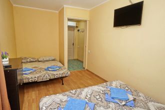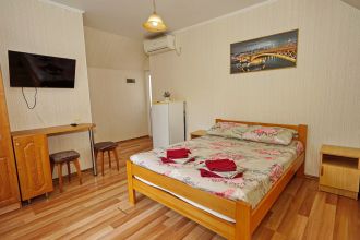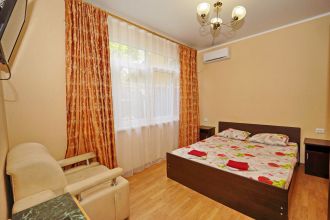 Встретили на вокзале, номер на троих. Администратор Татьяна каждое утро встречала вопросом: всё ли нам устраивает и комфортно ли нам спать?! Нам было хорошо: спали замечательно, парк через дорогу, кафе с комплексным и вкусным обедом на 1 этаже, пляж рядом. Балкон общий и длинный с видом на колесо обозрения, а из окна в номере вид на горы и церковь, купола которой, сверкают на солнце! Улица Павлова - это центр поселка, где пешком можно и на ж- д вокзал и на рынок сходить- все рядом. Советую всем это место!
