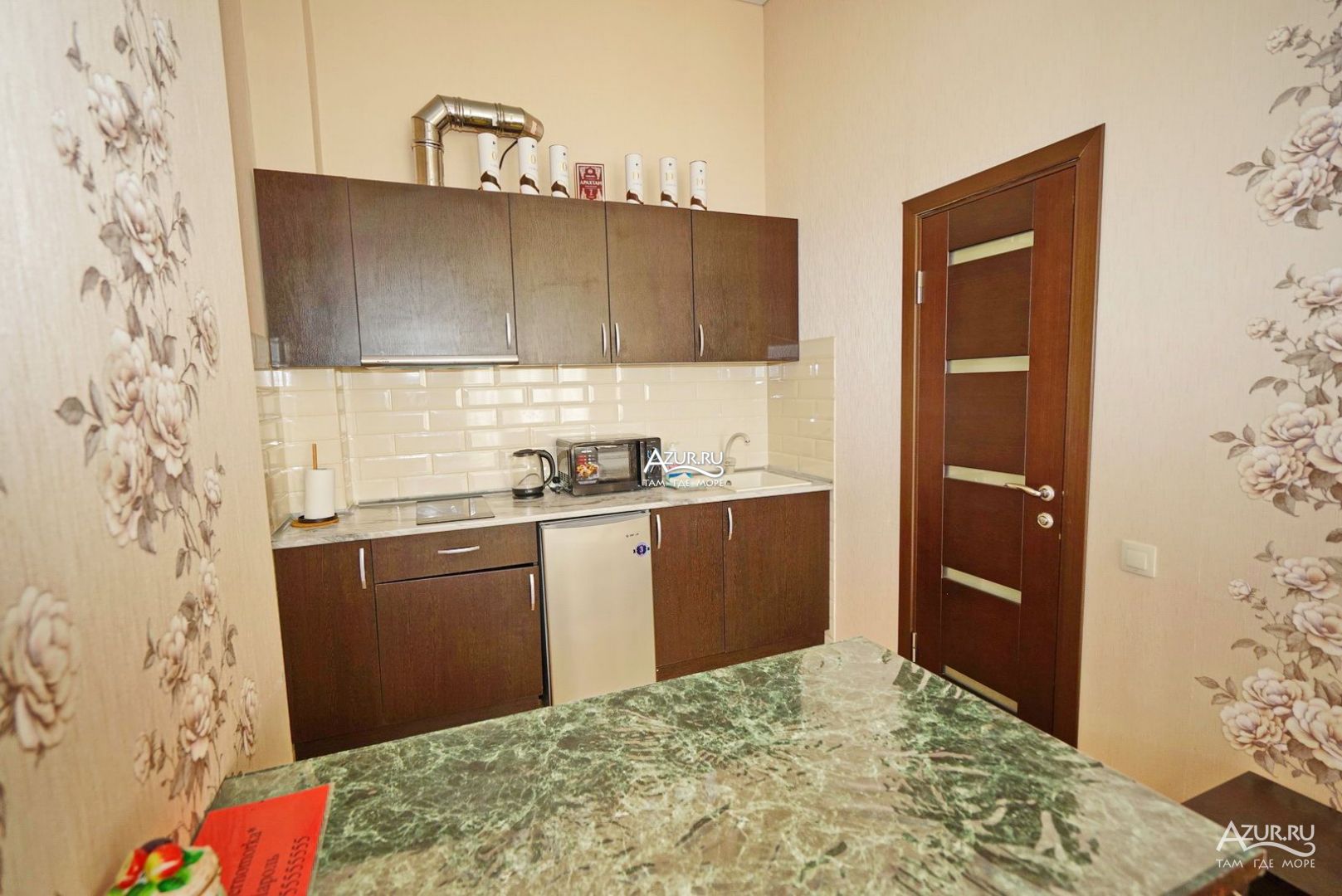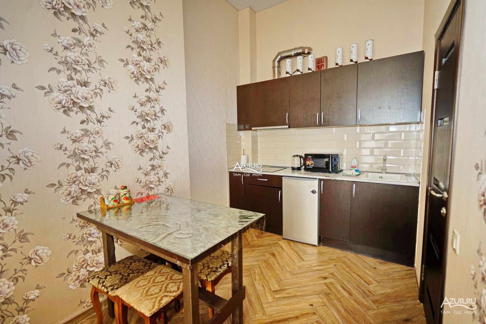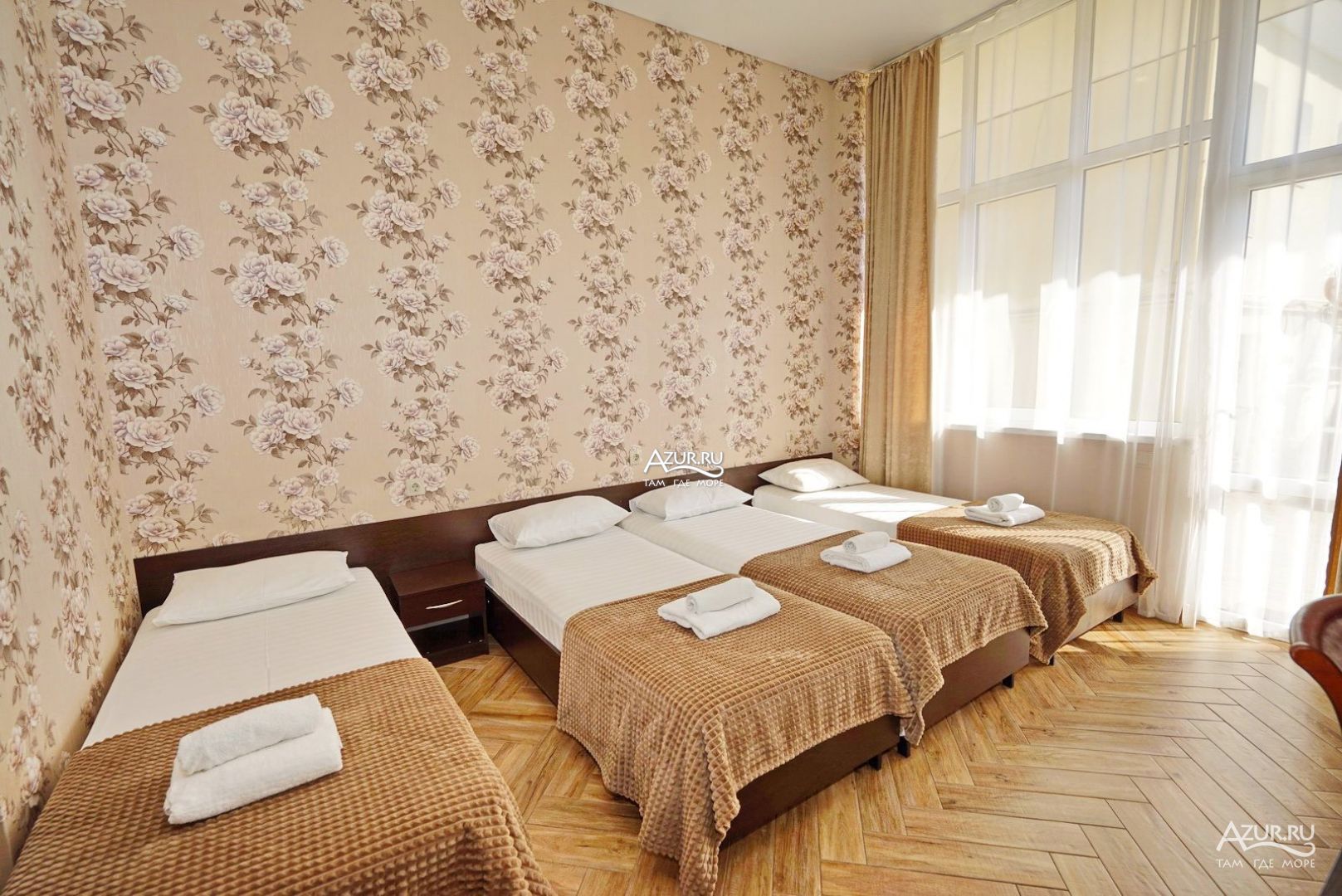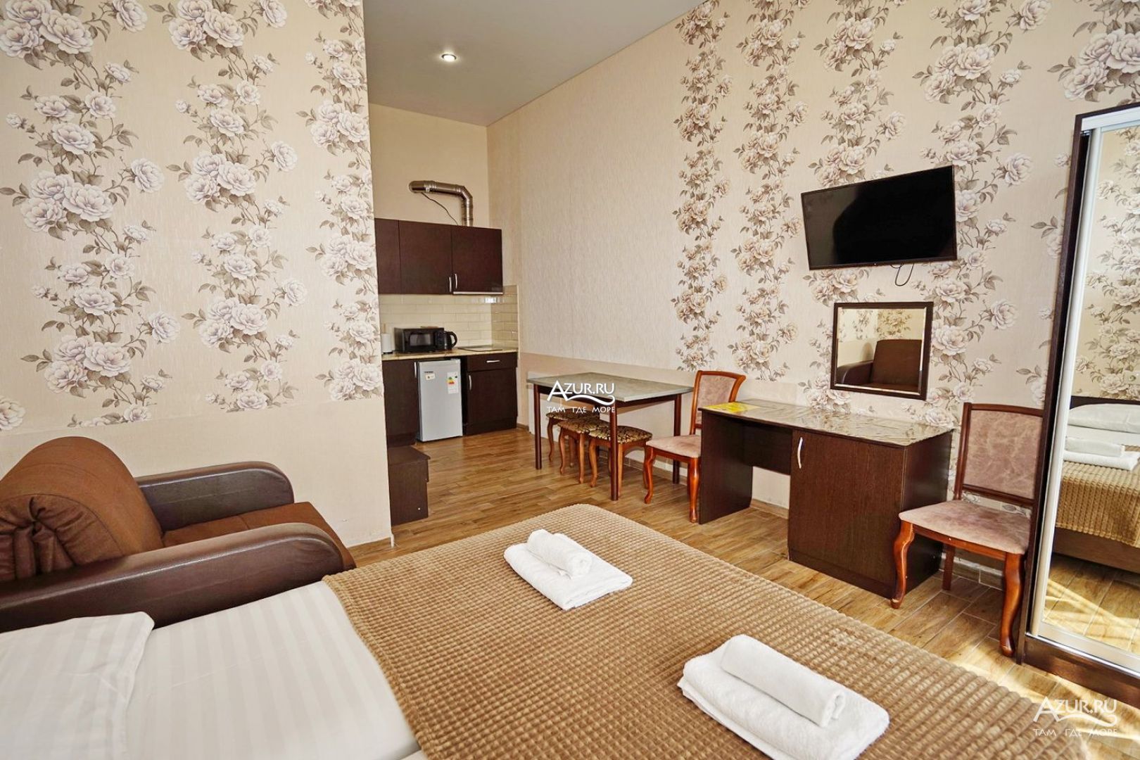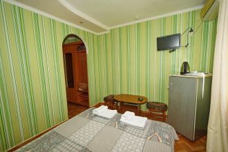 В гостевом доме имеются номера на 2-5 человек и "Делюкс" с личной кухней. Оснащение номеров: душ, туалет, холодильник, телевизор, кондиционер, фен, чайник с посудой, необходимая мебель, полотенце, постельное белье, гигиенические наборы.