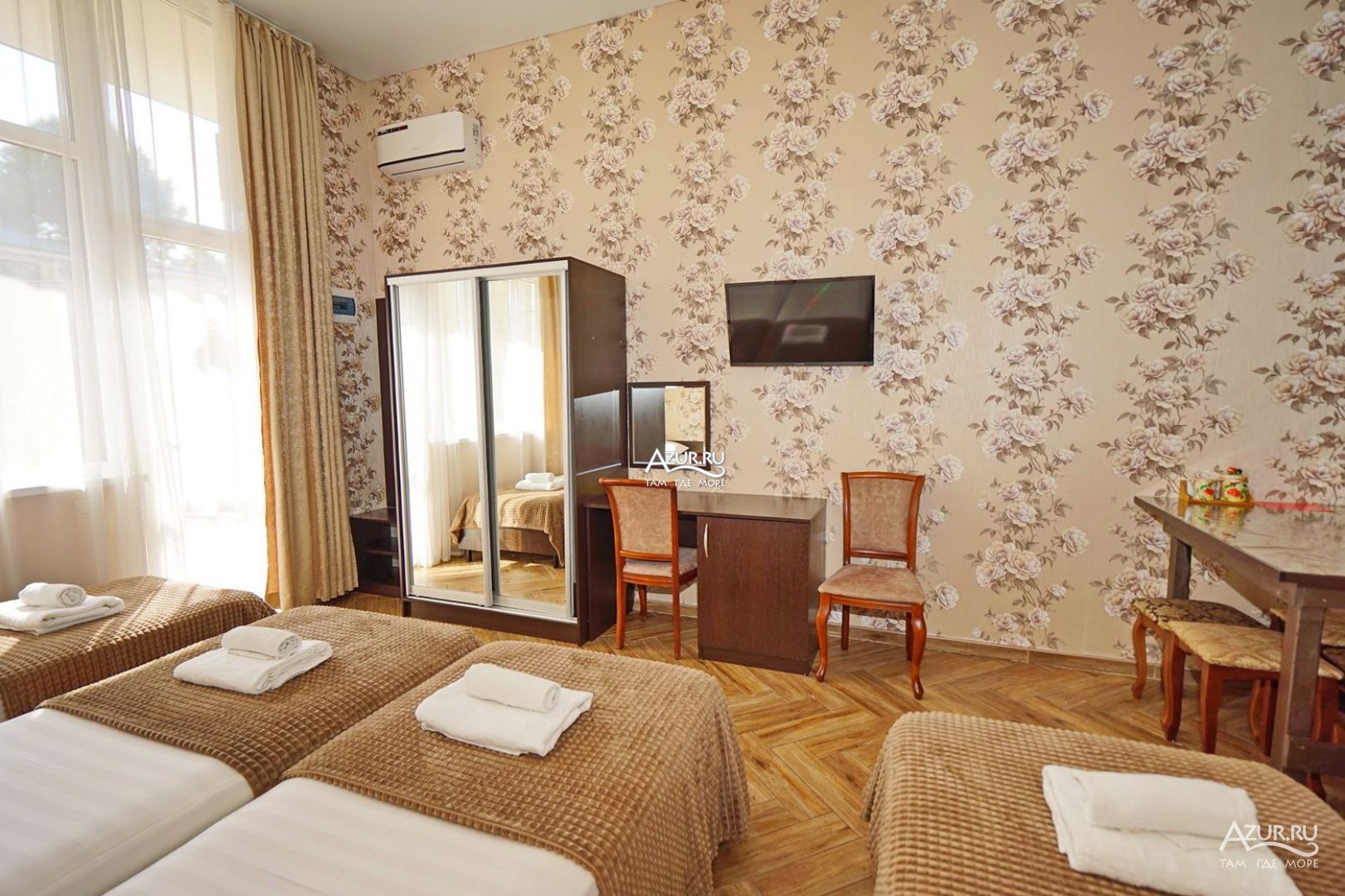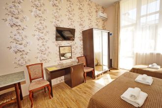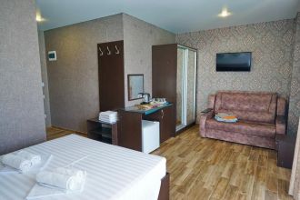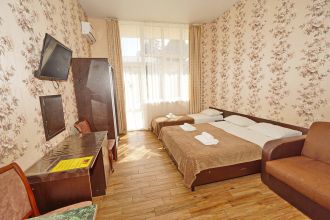 Забронирован у нас был другой номер в другом отеле, но когда мы туда "добрались" со слезами даже и заходить не стали, очень далеко, спустились вниз в поисках жилья и с первого раза попали в Черноморец, тут же и остановились, цена порадовала, до моря прогулочным шагом не более 10 минут, с учётом светофора. Рядом столовые с ценами хорошими и вкусными блюдами. В номере есть всё необходимое, но качество уборки огорчило, после жалобы всё исправили, администраторы очень хорошие девочки, по просьбе выдали фен и утюг, полотенца меняли по требованию. С малышом было нам удобно, рекомендую.