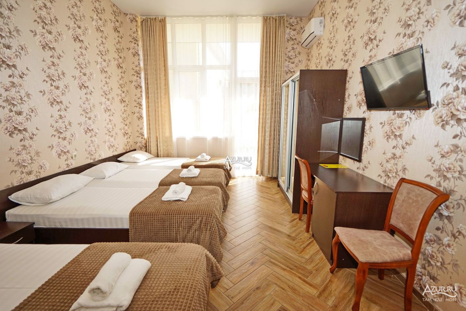 Всё понравилось. Месторасположение очень удачное. До моря действительно прогулочным шагом не более 10 минут. По дороге к морю проходили мимо торгового центра Бирюза, в цокольном этаже там сетевой магазин, Магнит, большой с хорошим выбором всего. А на 2 эт.- Фикс Прайс, за всякими мелочами туда бегали, на 1эт. круглосуточная аптека. Банкоматы Сбера на 1 и 2 эт. На 2 эт. детский развлекательный центр, где можно дитя оставить под присмотром, там же и вай-фай, можно поработать в интернете. К морю шли через череду палаток, там можно купить обувь для купания, купальные принадлежности. Пляж галечный, босиком не продержаться с непривычки). В отеле сам номер очень понравился. Конечно, туалетная комната со своей спецификой, не помешали бы сгоны для воды, чтобы воду убирать после приёма душа. Номер комфортный, холодильник, электрочайник, телевизор, кондиционер в номере. Маленький фен выдали по моей просьбе. Вай-фай отличный. Балкон просторный, но тоже присоединяюсь к просьбам чем-то прикрыть, ребёнка не выпускала на балкон одного. Кровать отличная. Персонал доброжелательный. Отель рекомендую.
