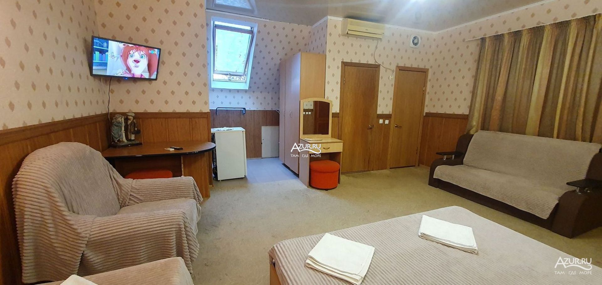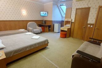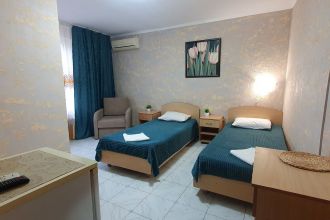 Отдыхаем в этой гостинице не первый раз и хочется возвращаться снова. Отличные чистые номера с удобствами (свой холодильник, телевизор, сплит система), постоянное наличие горячей воды. Функциональная кухня, едешь на отдых и не думаешь что надо с собой тащить гору посуды, все есть в наличии от кружек, стаканов и столовых приборов до кухонной утвари(сковородки, кастрюли). Администратор Юля всегда следит за чистотой посуды и самой кухни. Хорошее расположение (рядом магнит, круглосуточный минимаркет, куча ларьков, столовых, дельфинарий, аквапарк). До моря тоже близко. А за детскую площадку и теннисный стол плюс 10 баллов сверху. Родители отдыхают за столом, дети под присмотром на площадке.